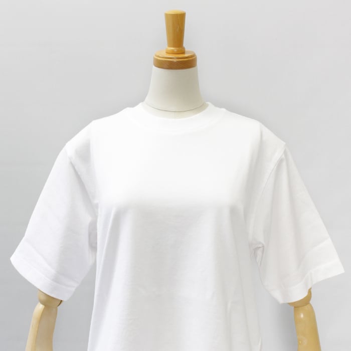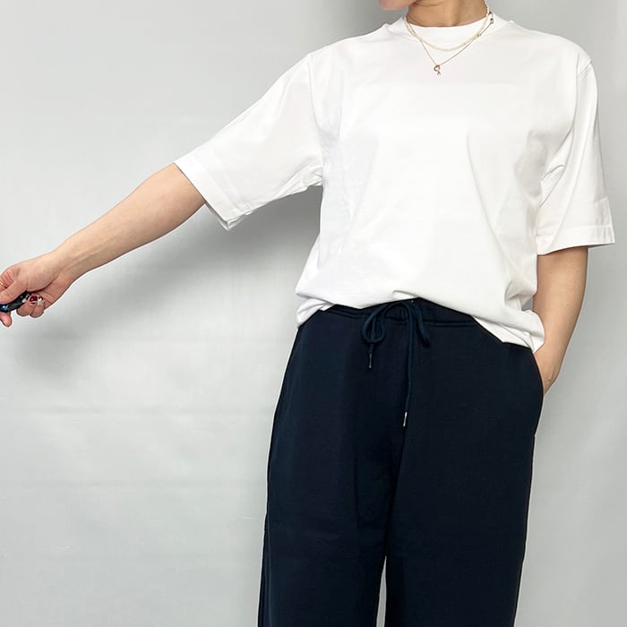 程よいゆとりを持たせたボディに、絶妙な長さの袖丈、やや詰まったクルーネックを組み合わせたデザイン。
