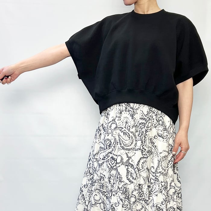 身頃続きのギャザースリーブから生まれる立体的なフォルムとクロップド丈が魅力。
