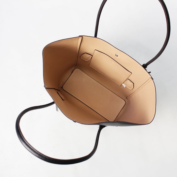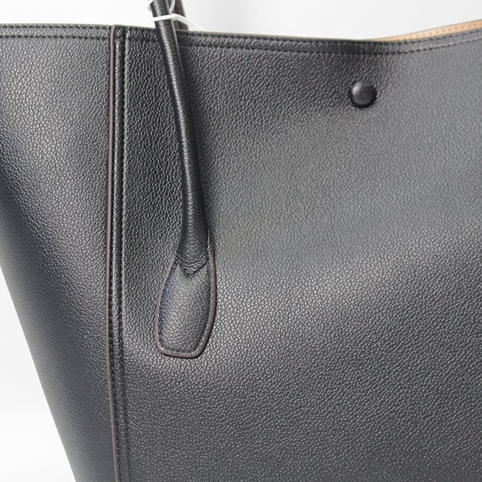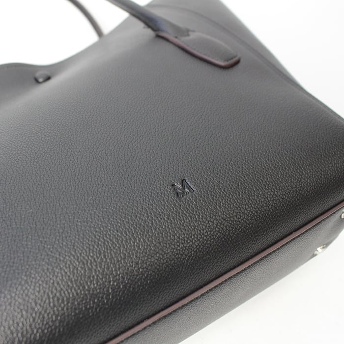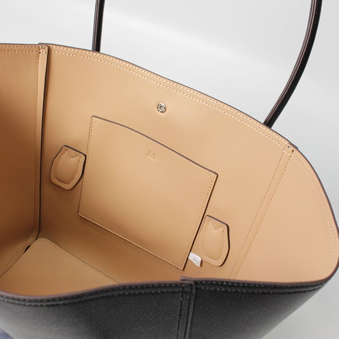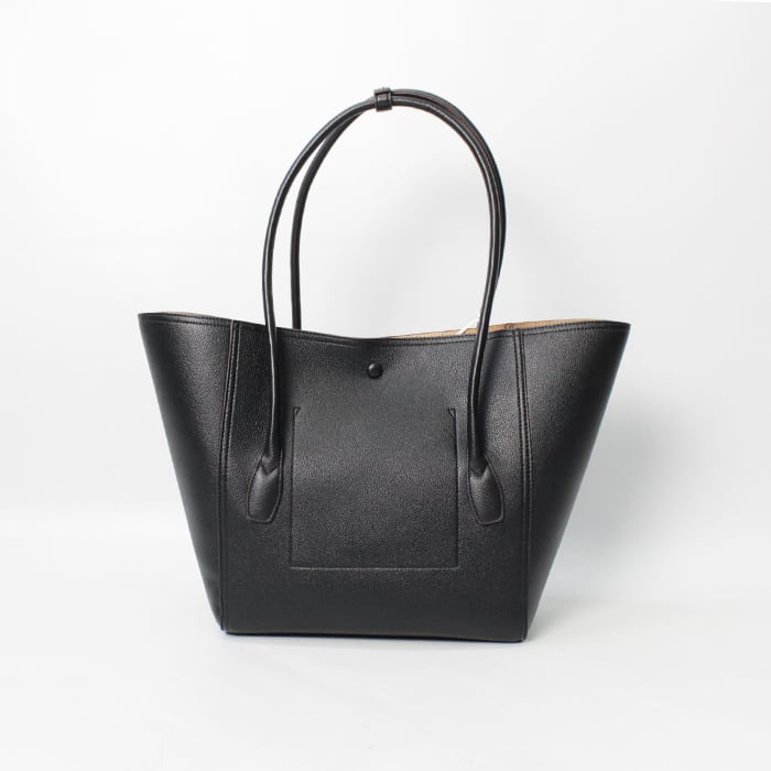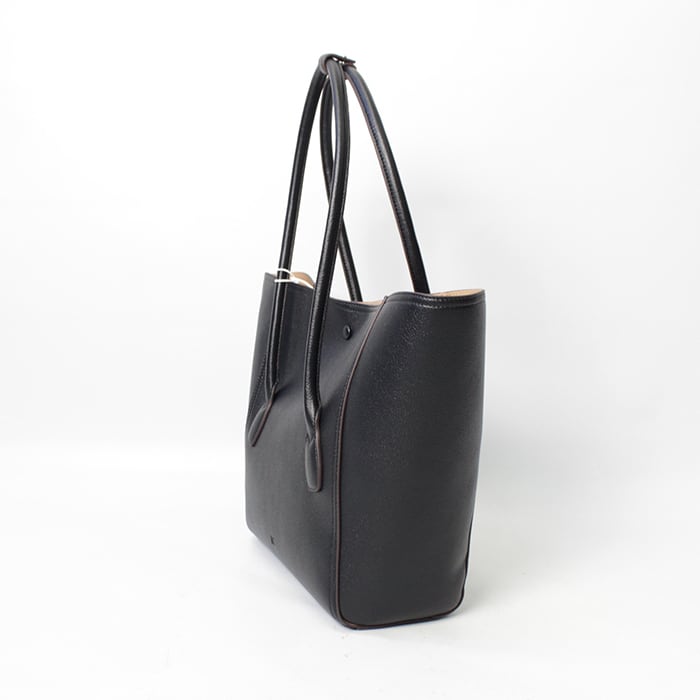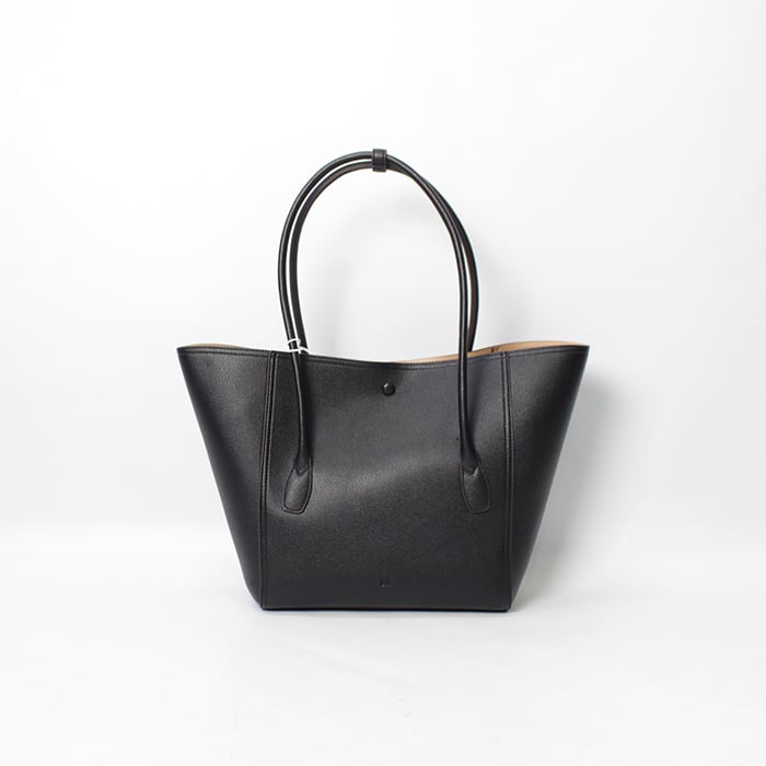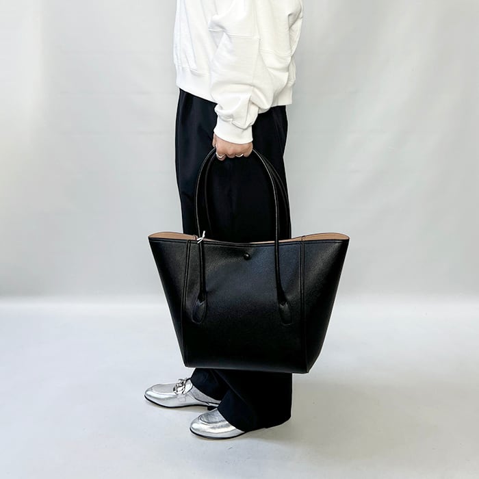 合皮素材を使用しながらも上品な質感で仕上げ、シンプルながらも洗練されたデザインが魅力のトートバッグ。