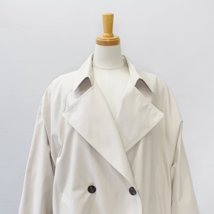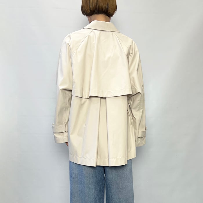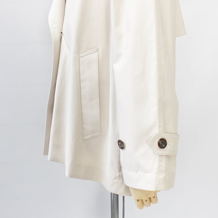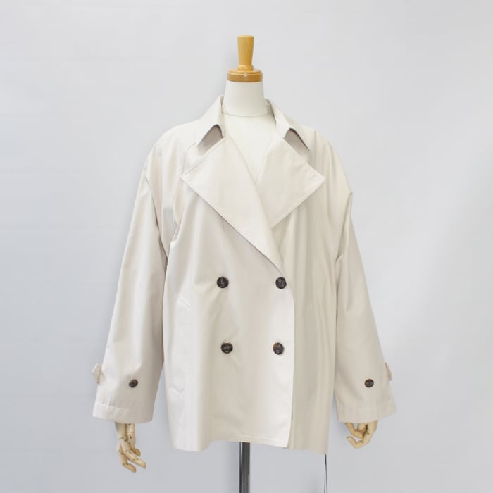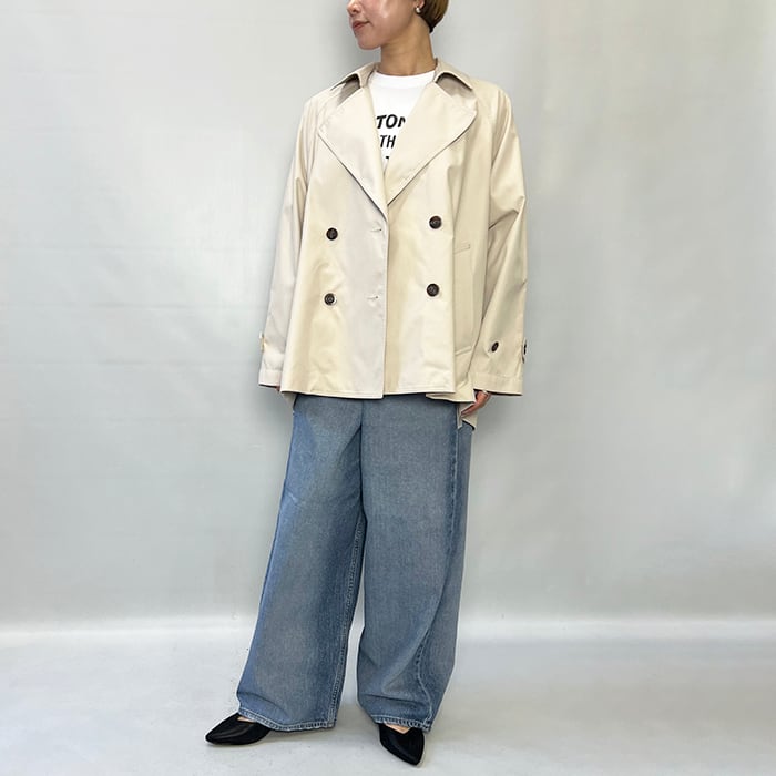 ショート丈のトレンチコートは様々なボトムスともバランスが取りやすいので着回しの利く一枚です。