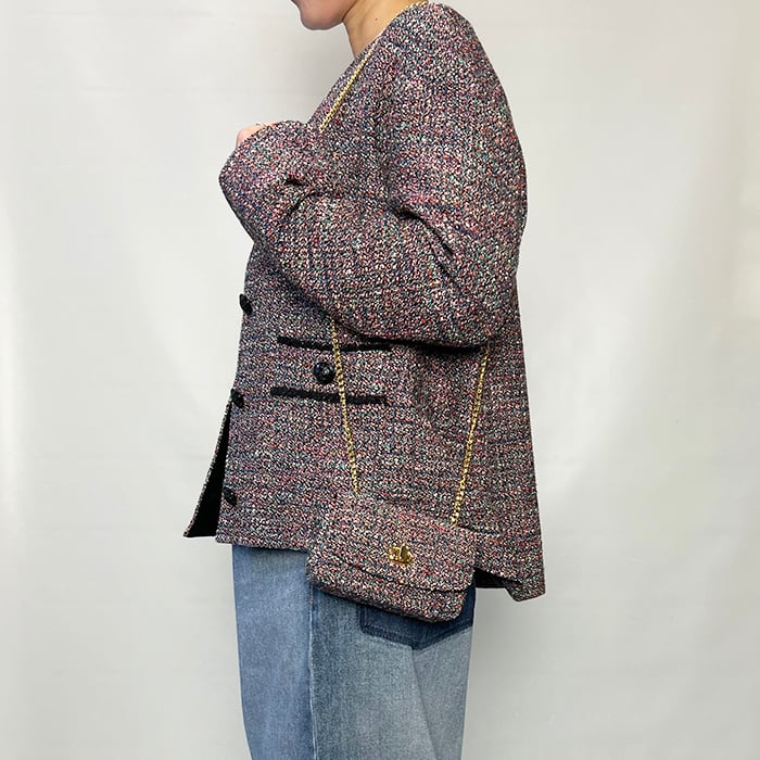 極小のスパンコールが上品さとカジュアル感を演出し、普段使いしやすいツイード素材です。