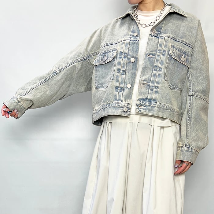 上からの視点で畳むことから生まれた独特なフォルムの デニムブルゾン。