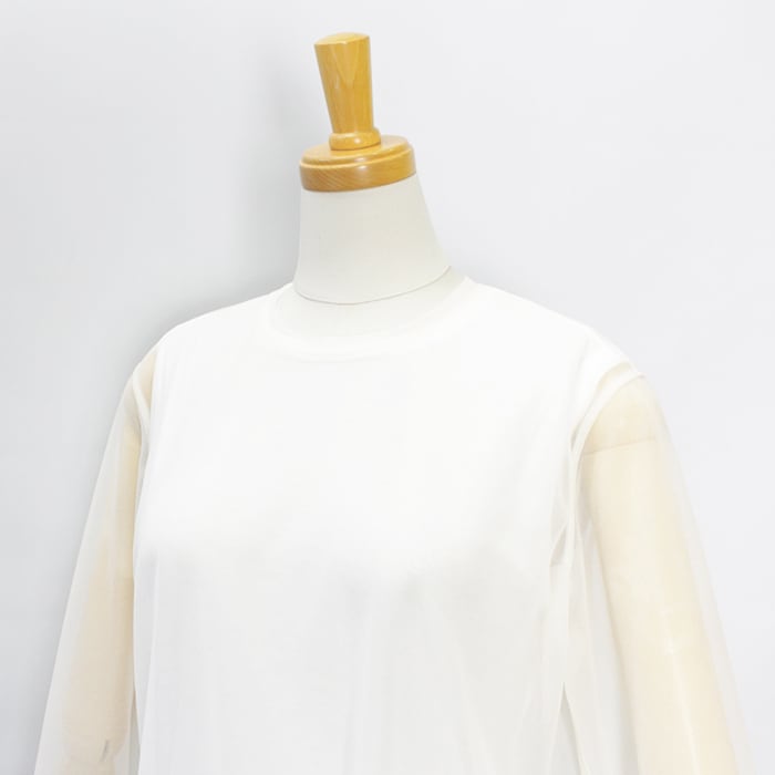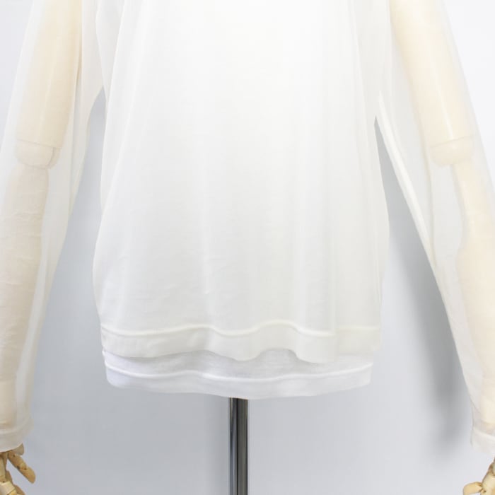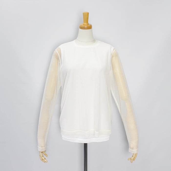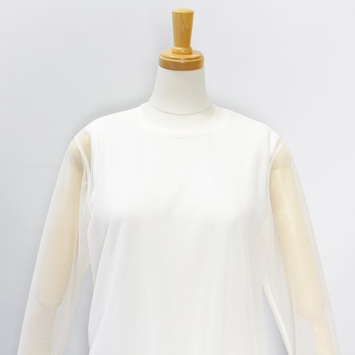 アウターのロングスリーブTシャツは、ポリエステルのシアー素材。