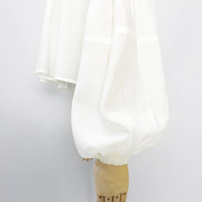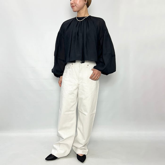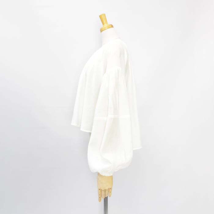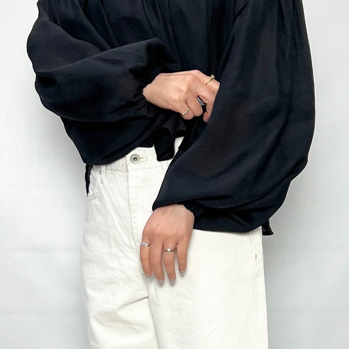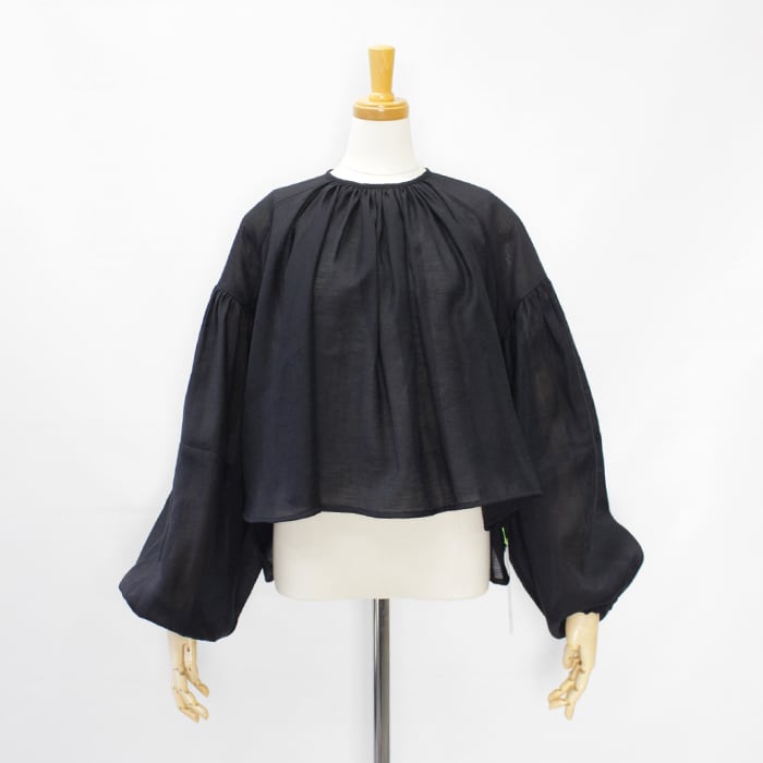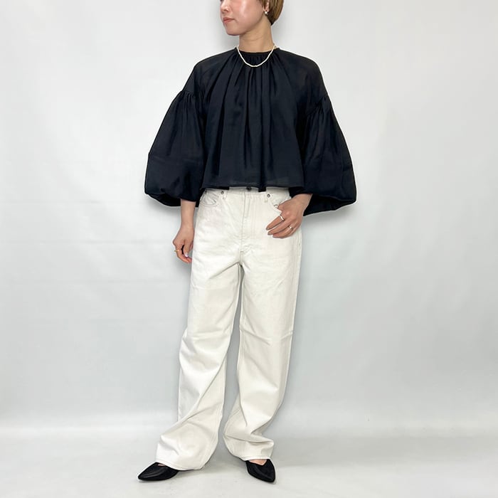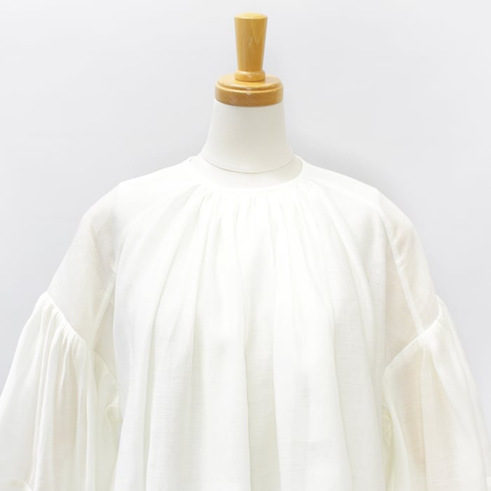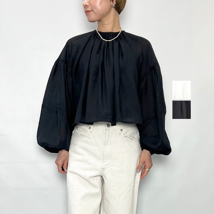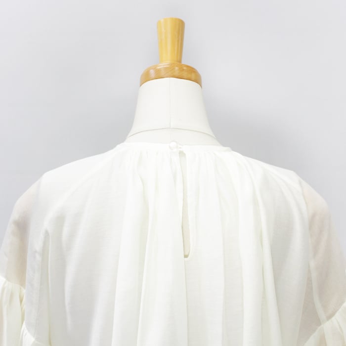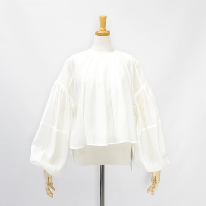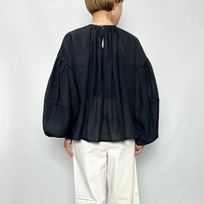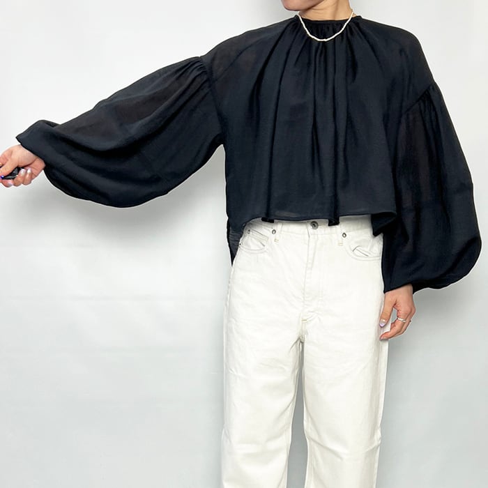 たっぷりとしたボリュームスリーブの透け感あるブラウス。