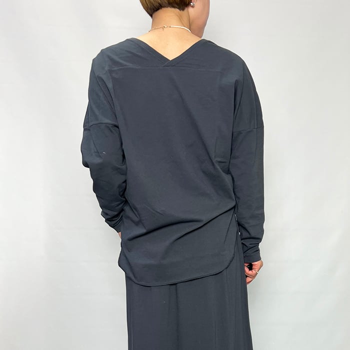 薄手の素材なのでジャケットやカーディガンのインナーにも合わせやすく、シーズン問わず着用いただけるアイテムです。
