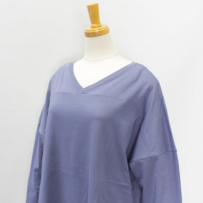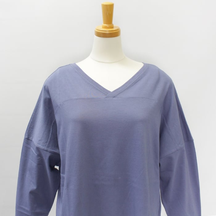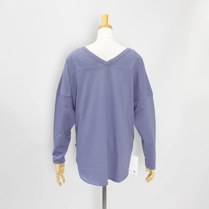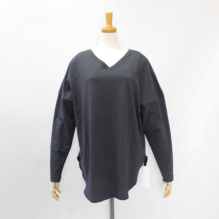 フットボールTシャツを女性らしいサイジングにアレンジした、前後2wayで着用いただけるVネックトップスです。