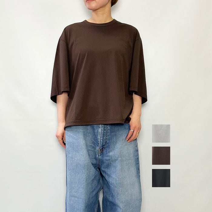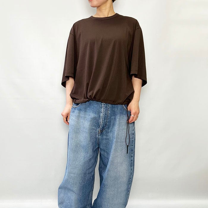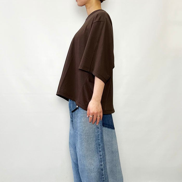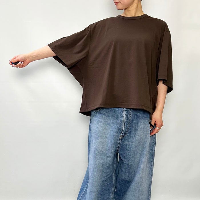 アームホールが肩から落ちたフォルムが特徴的なTシャツ