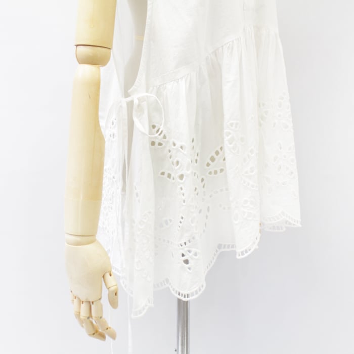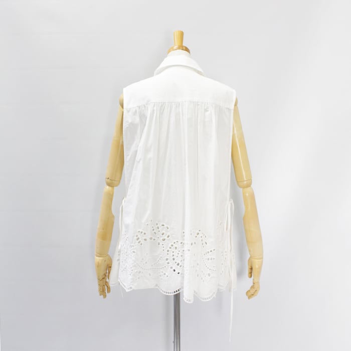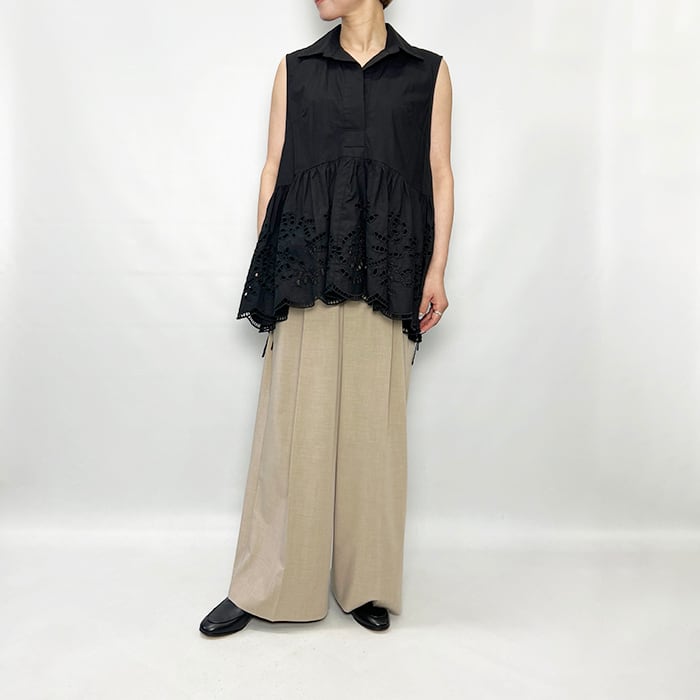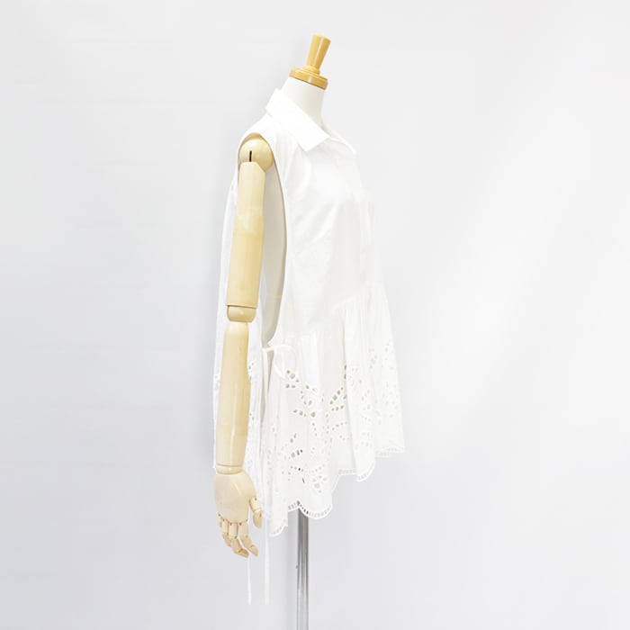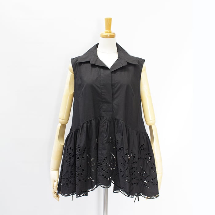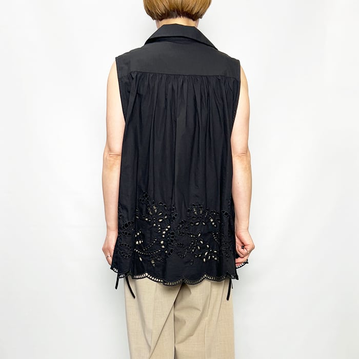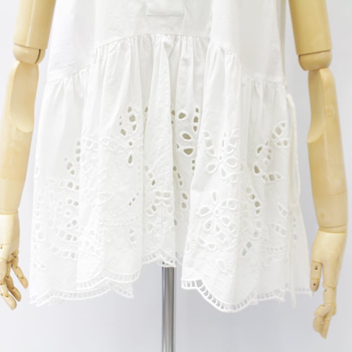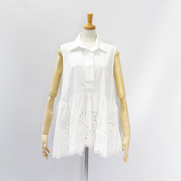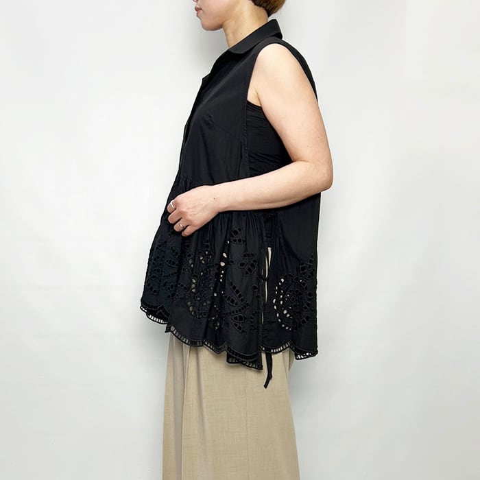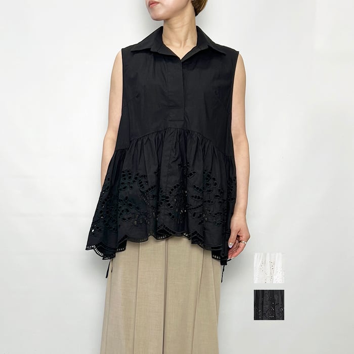 ボタニカル調のレース刺繍が華やかさをプラスしたコットン素材のトップス。