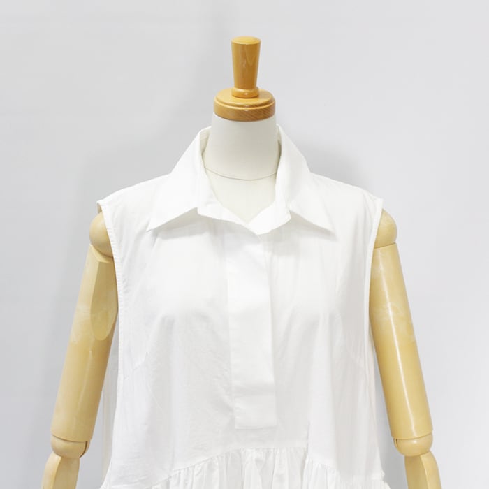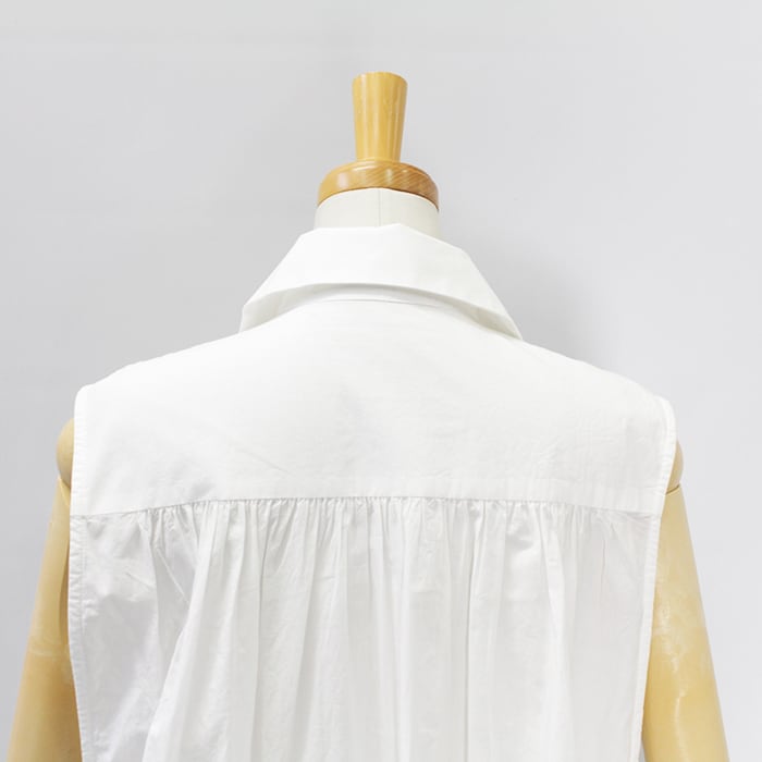 前上がりのシルエットとギャザー使いがスタイルアップ効果を発揮。