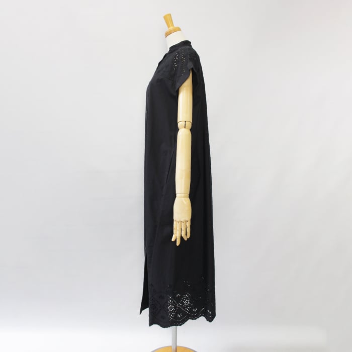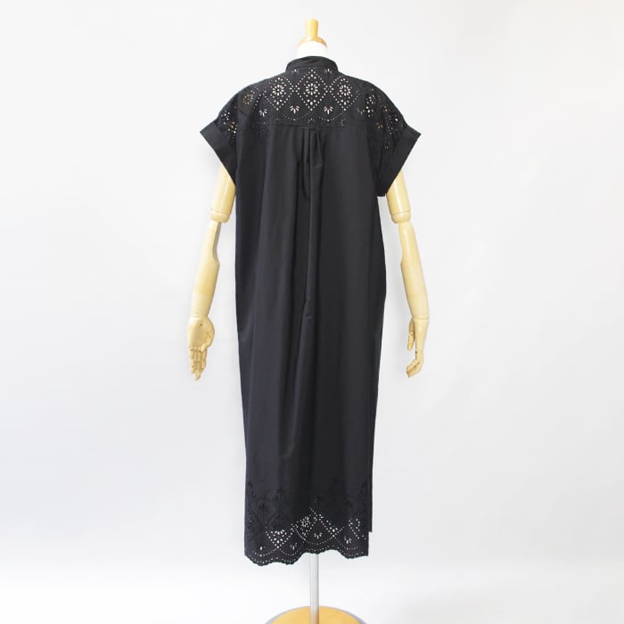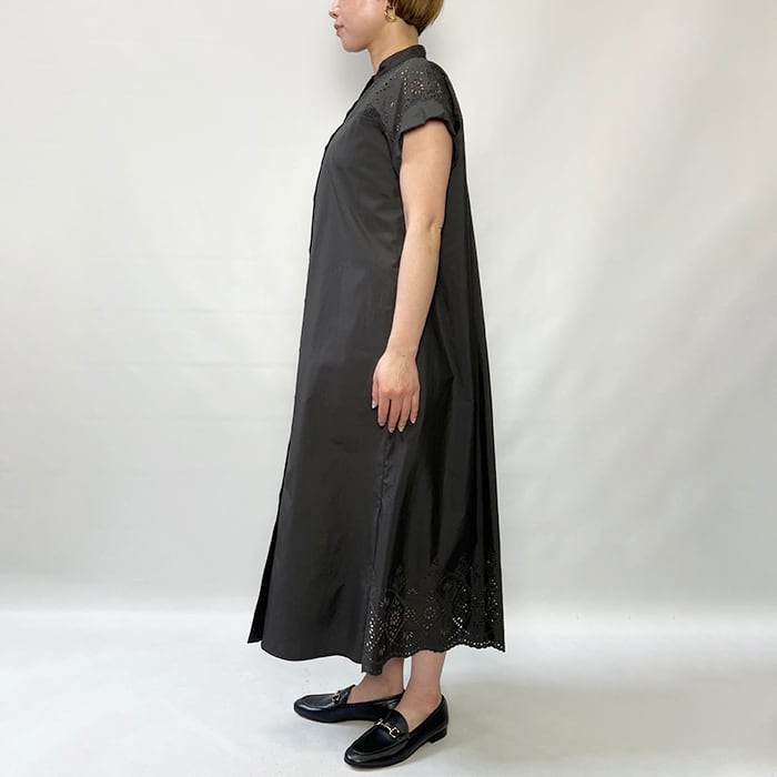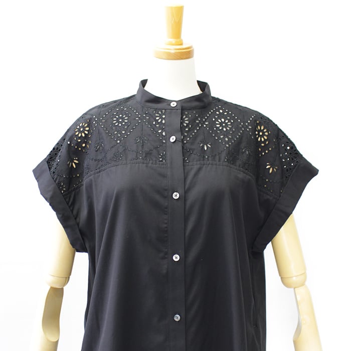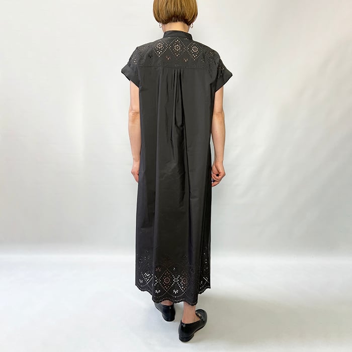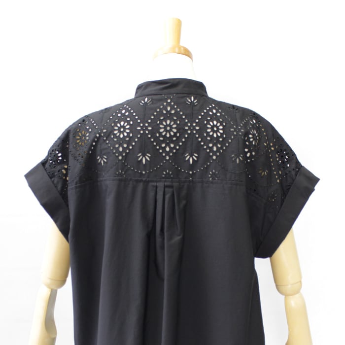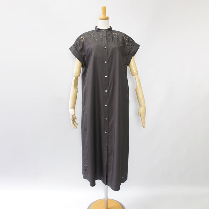 シャツの凛々しさとレースの女性らしさを合わせたデザインで、1枚で存在感たっぷりのロングシャツドレスです。