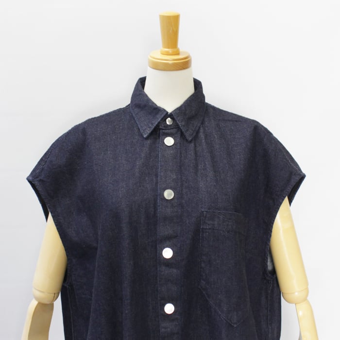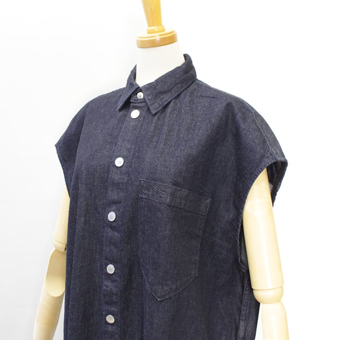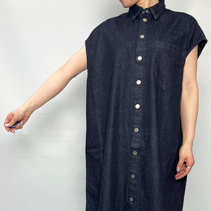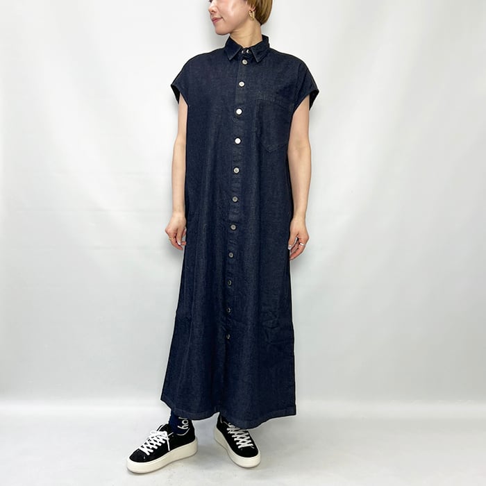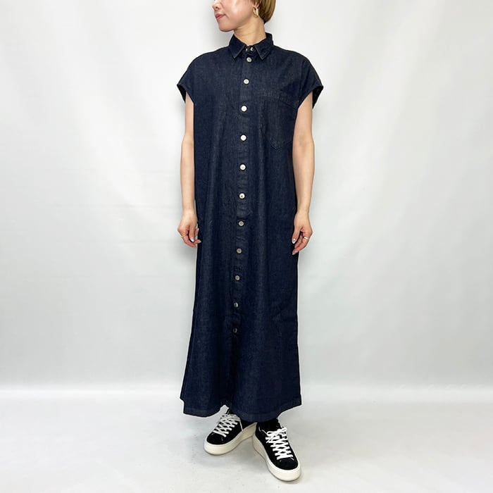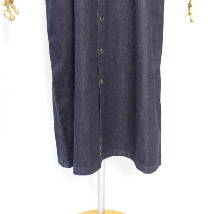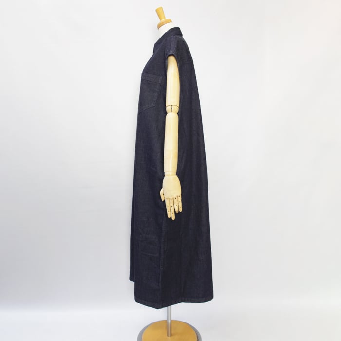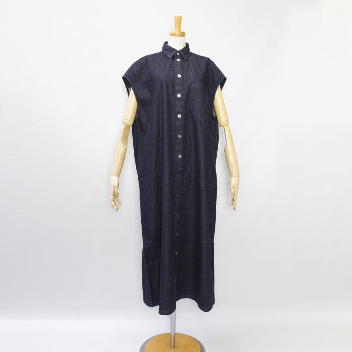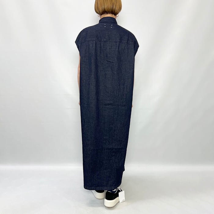 9ozという軽さと重厚感のあるシボ顔を両立した綿100%デニムで仕立てたマキシ丈ドレス。