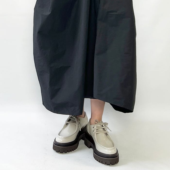 ゆったりとしたシルエットで、下の布帛部分はコクーンのようになっています。