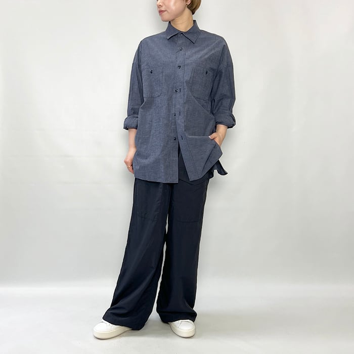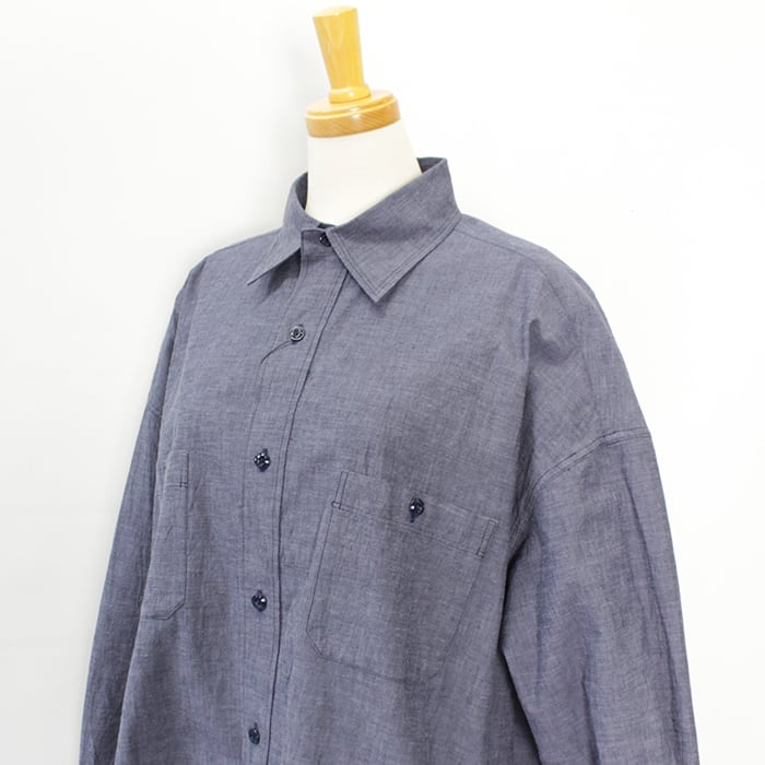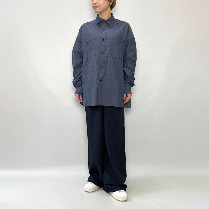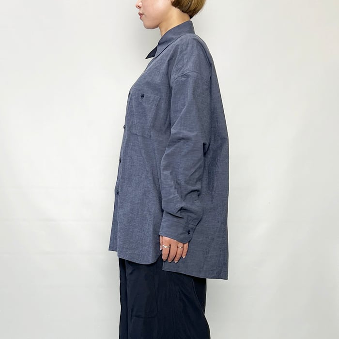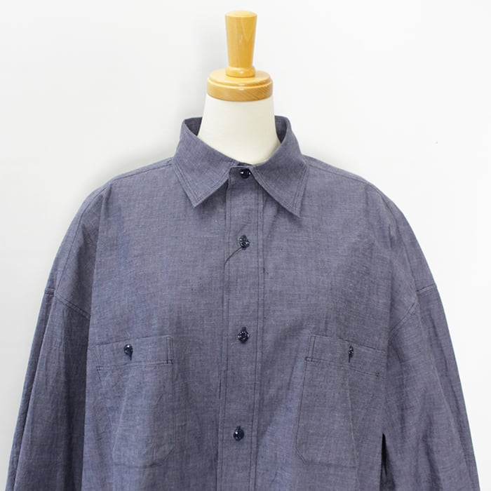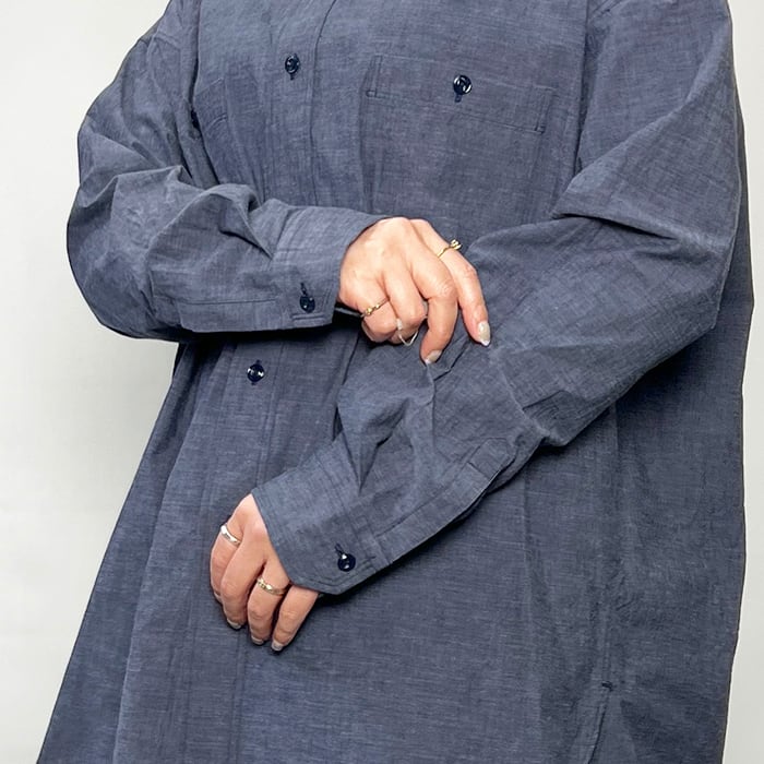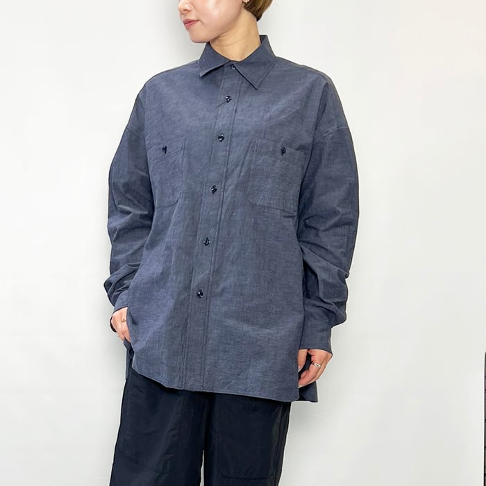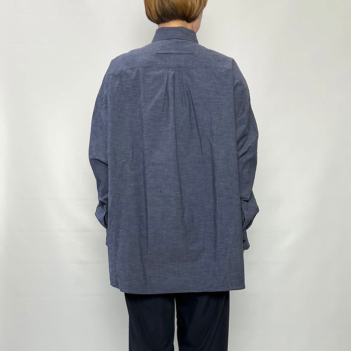 TICCAらしいユニセックスシャツの新しい表現として生まれた、ニアデニムWポケットスクエアビッグシャツ。