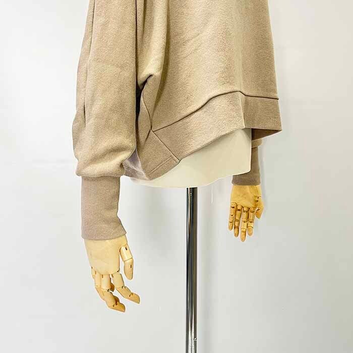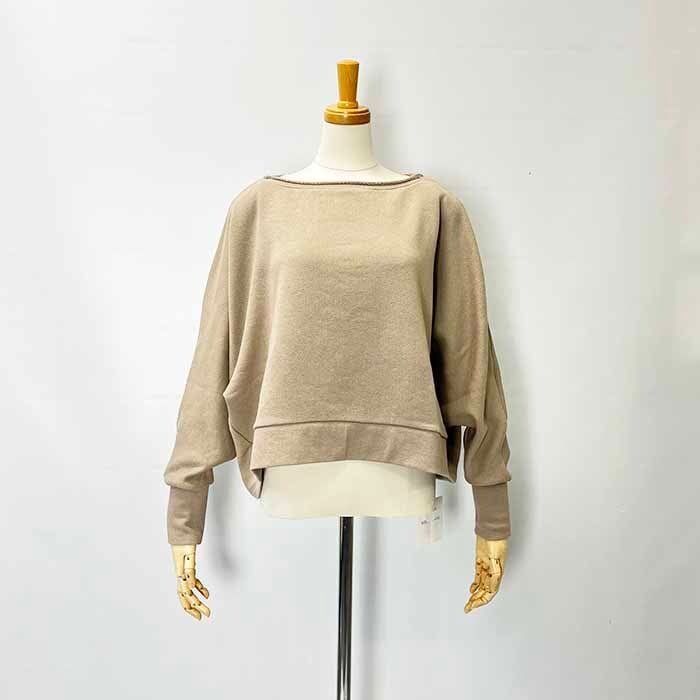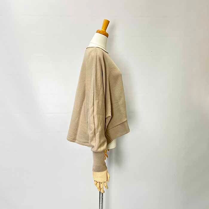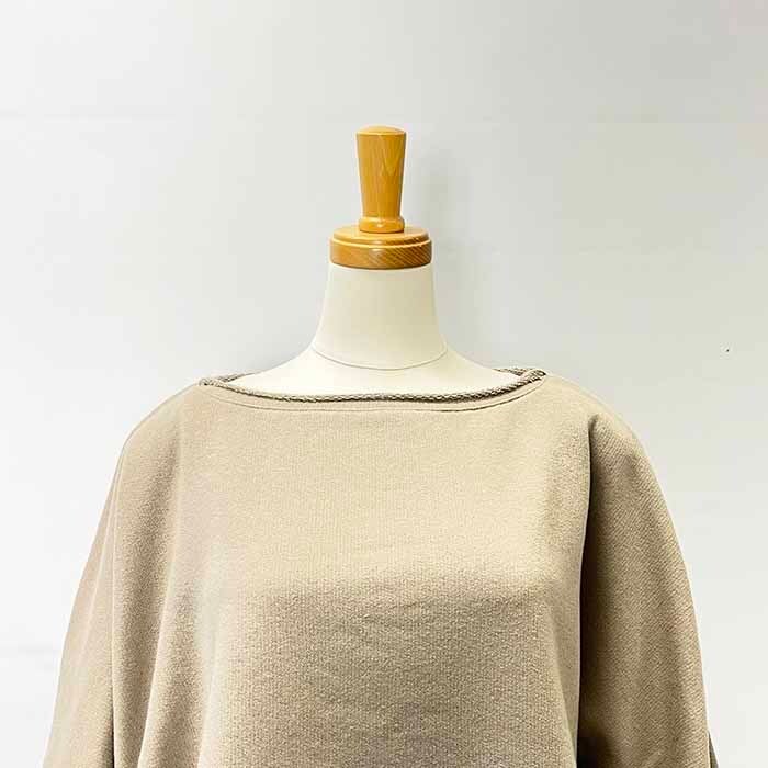 襟ぐりが大きく開いたドルマンスリーブのプルオーバー。