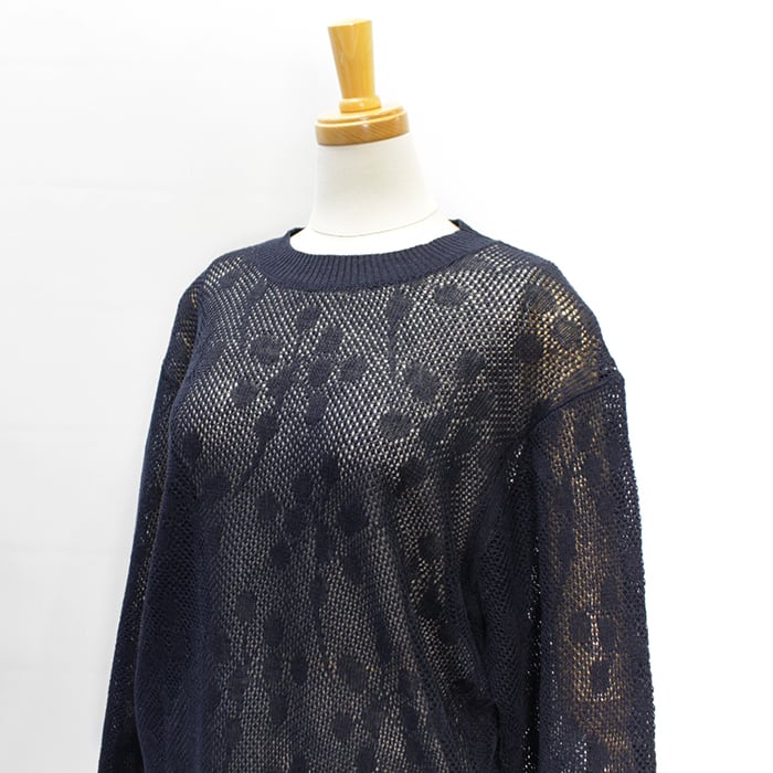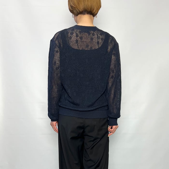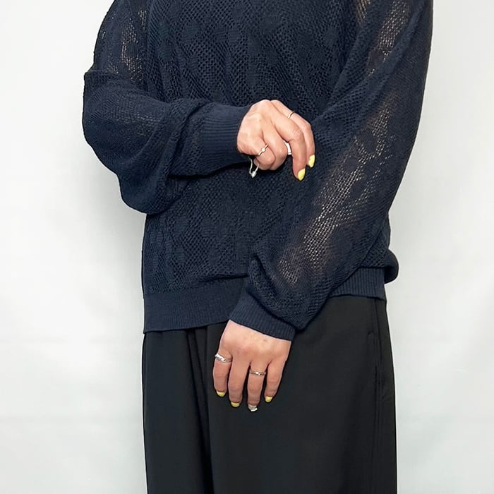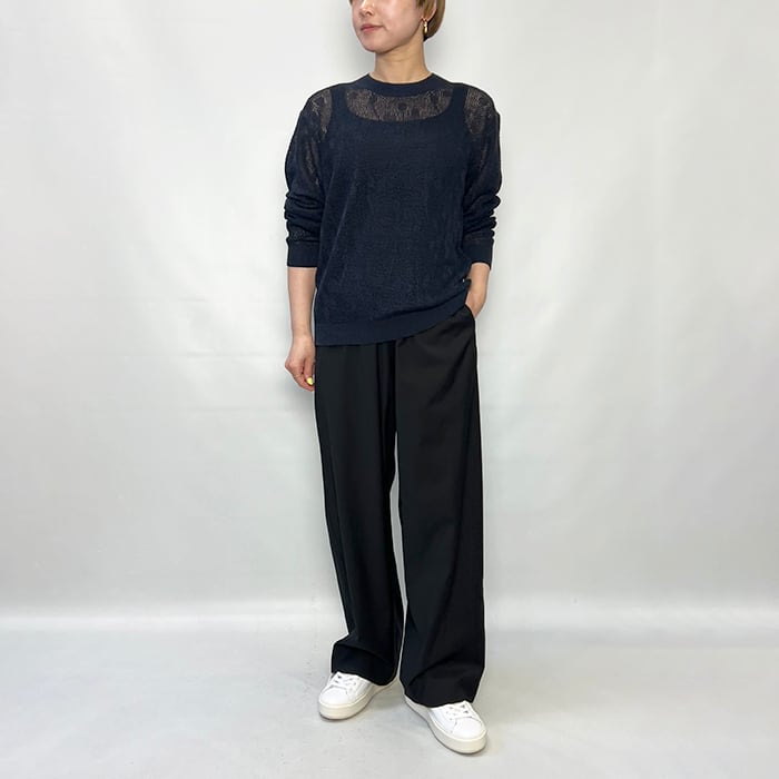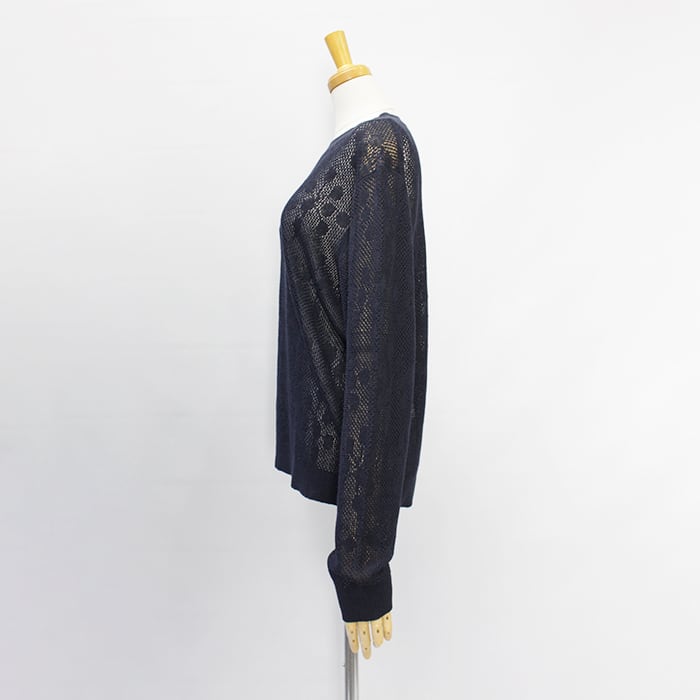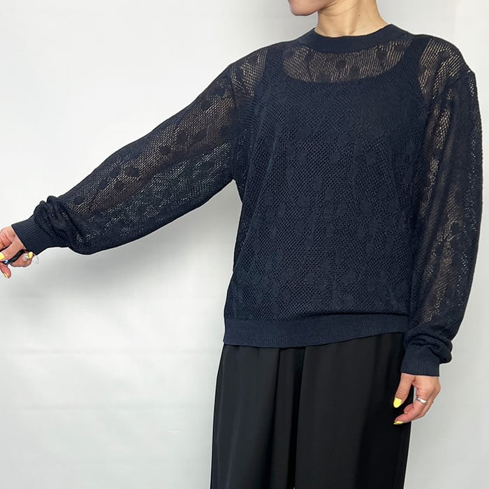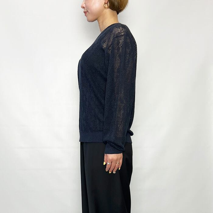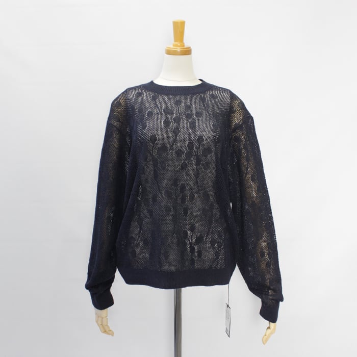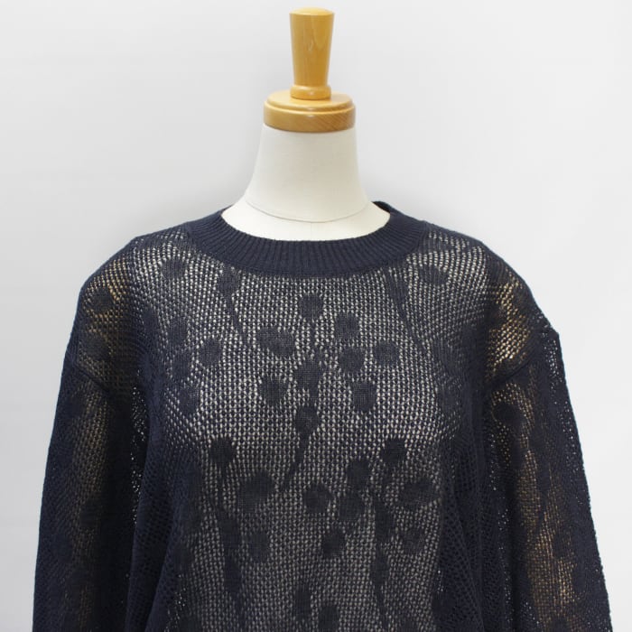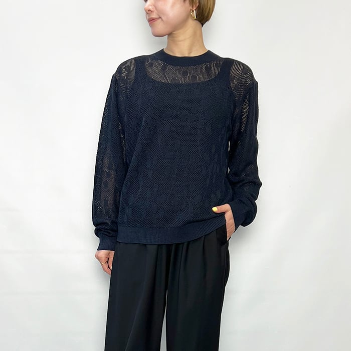 透かし柄がポイントの軽やかなクルーネックニット。