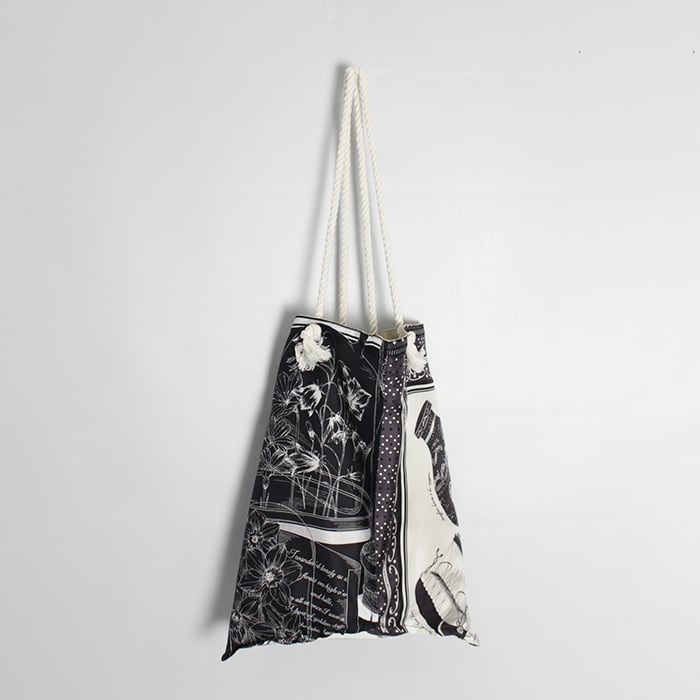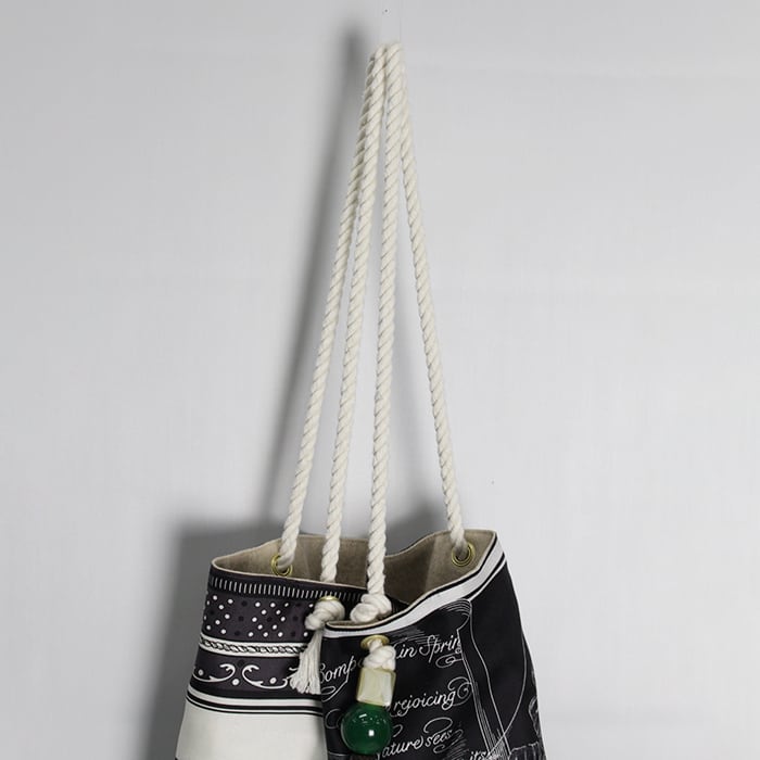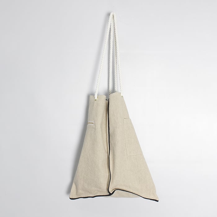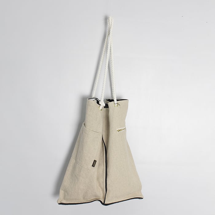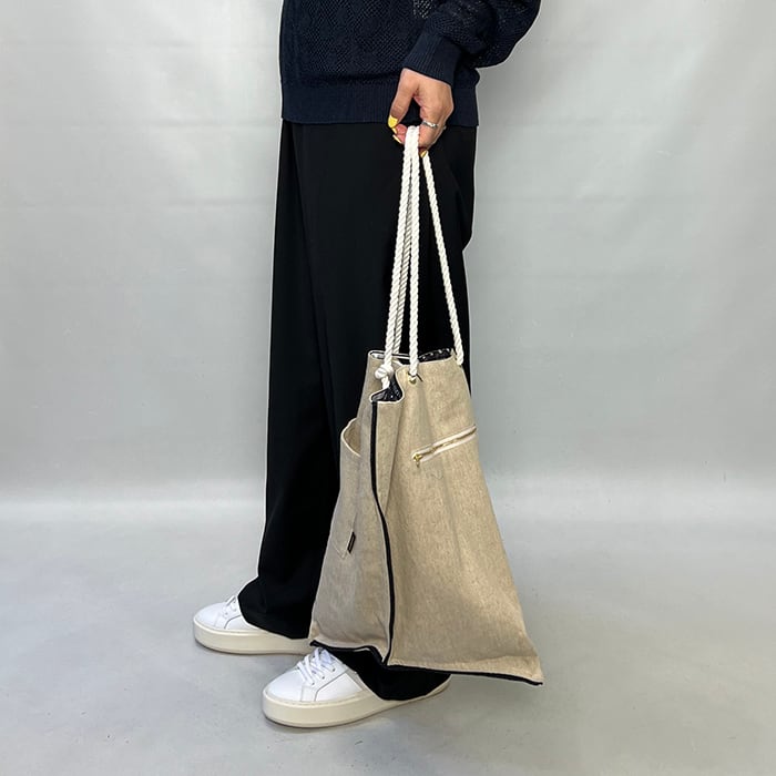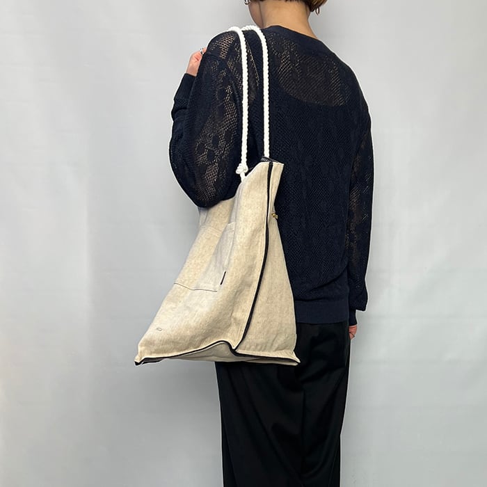 ロープ仕様のハンドルにアクセントパーツをあしらい、程よい抜け感と存在感をプラスした、manipuri定番のトートバッグ。