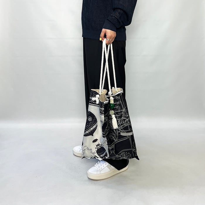 一つで二役になる優れものです。持ち手がサイドに付いており、持った時のフォルムが三角形になるデザインです。
