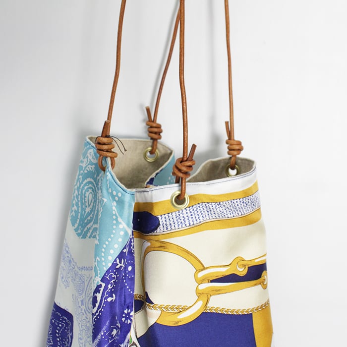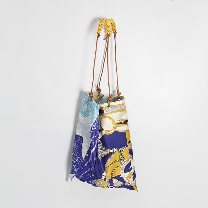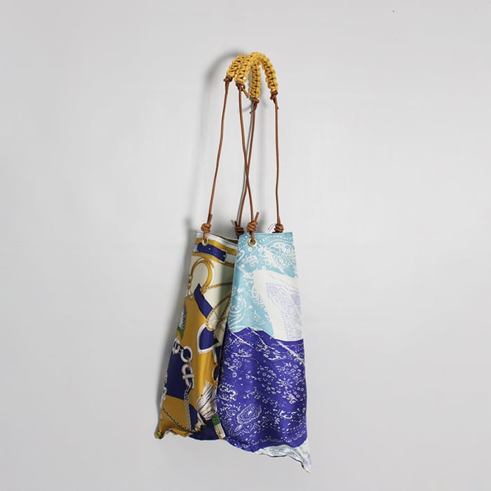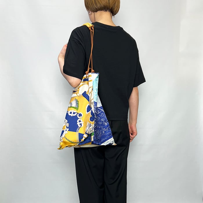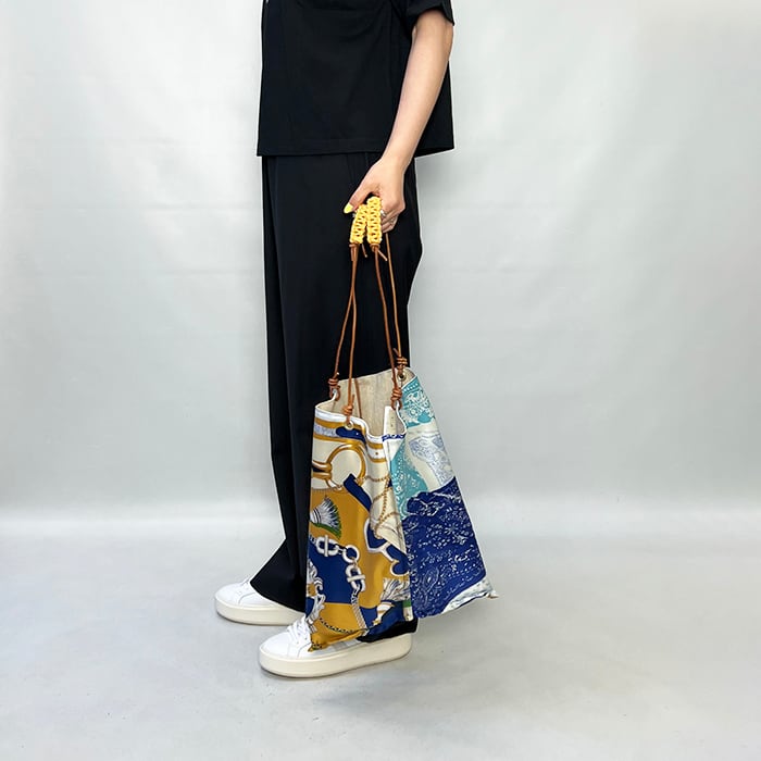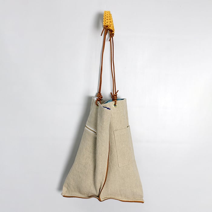 持ち手がサイドに付いており、持った時のフォルムが三角形になるデザインです。