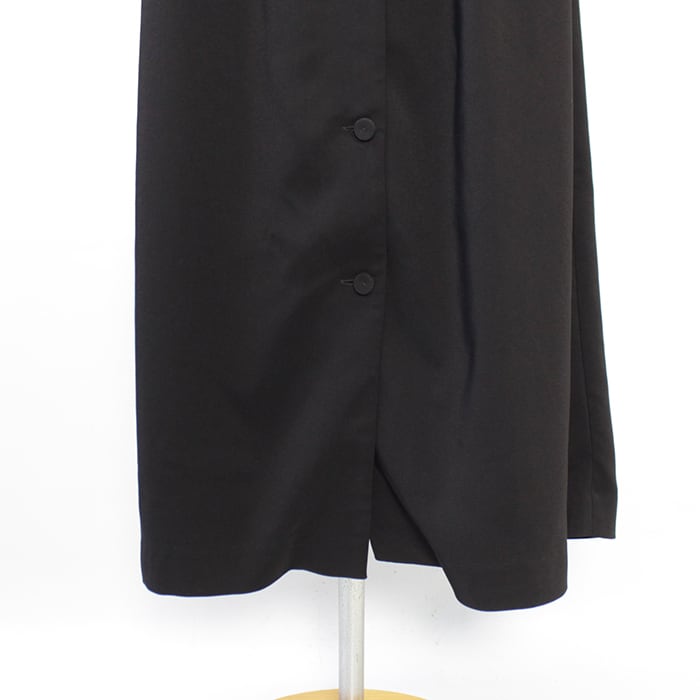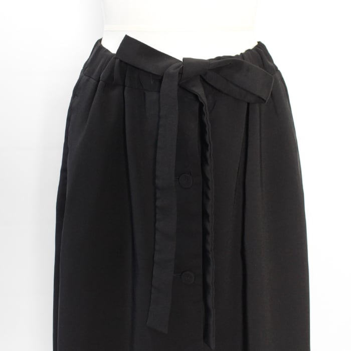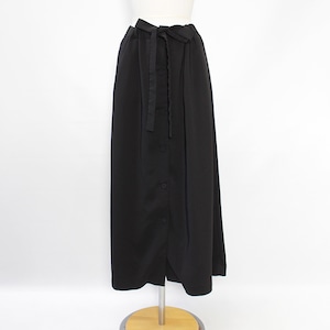 フロントは前開き仕様にしているので、下にパンツを重ねてレイヤードしても良いですし、総裏にして見返しの重ね幅も調整し太くしてあるので、一枚で着ていただくことも可能なエプロン型のベルテッドスカート。