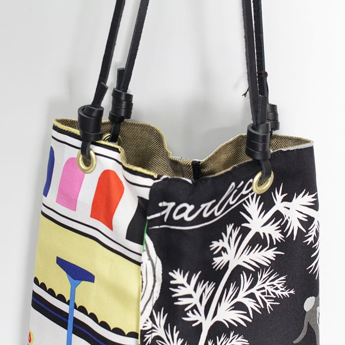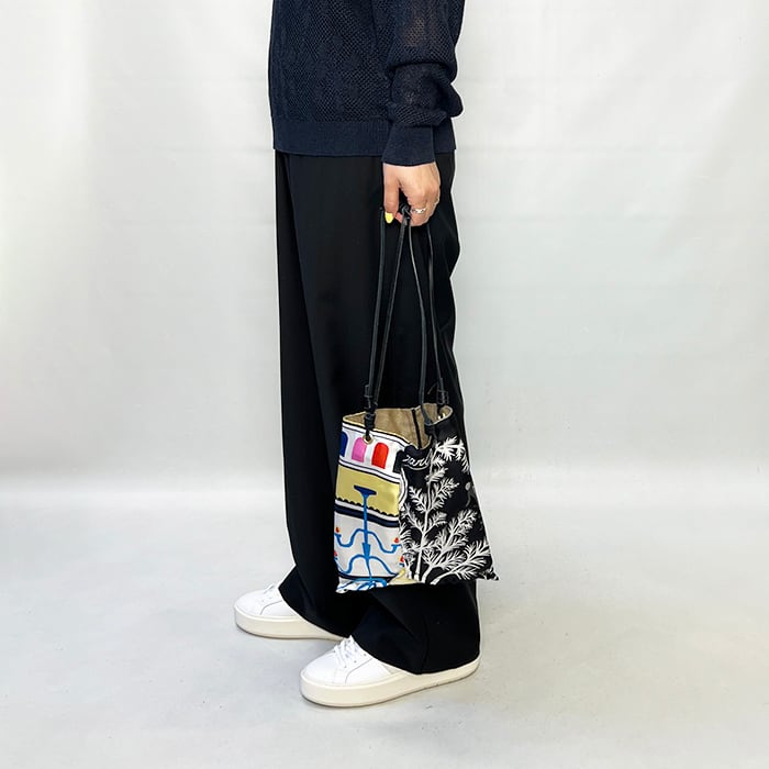 裏返すとシンプルカラーのバッグに変身するリバーシブル仕様。