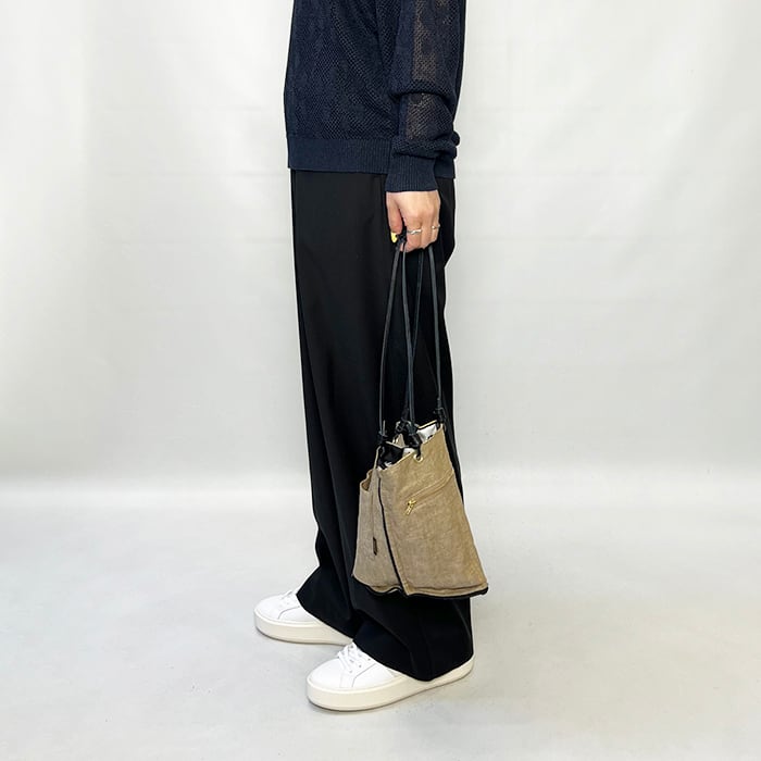 サコッシュのような小ぶりのサイズ感のバッグで見る角度により様々な表情が楽しめる人気のトートバッグです。