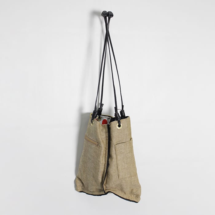 一つで二役になる優れものです。持ち手がサイドに付いており、持った時のフォルムが三角形になるデザインです。
