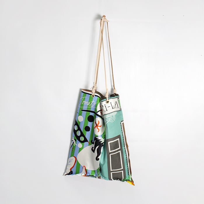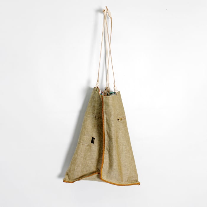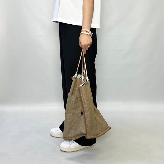 一つで二役になる優れものです。持ち手がサイドに付いており、持った時のフォルムが三角形になるデザインです。