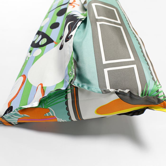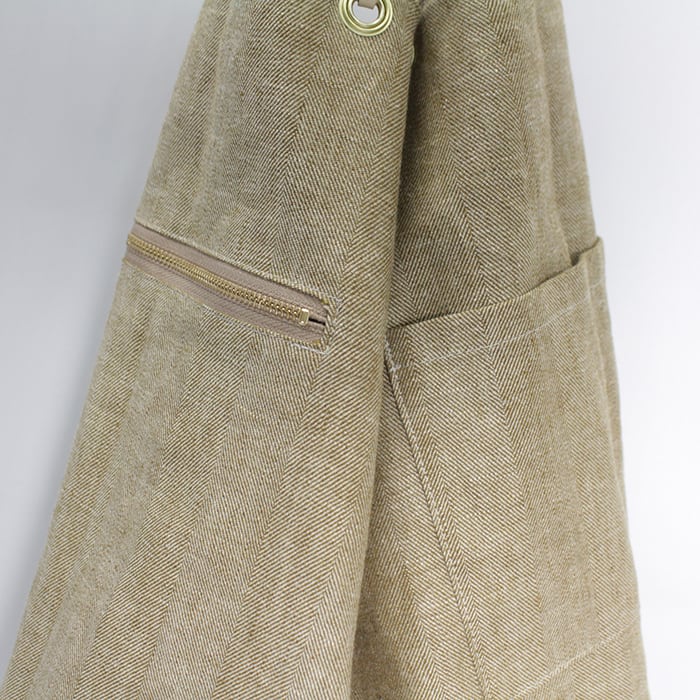 裏返すとシンプルカラーのバッグに変身するリバーシブル仕様。