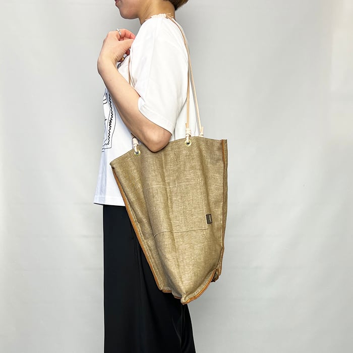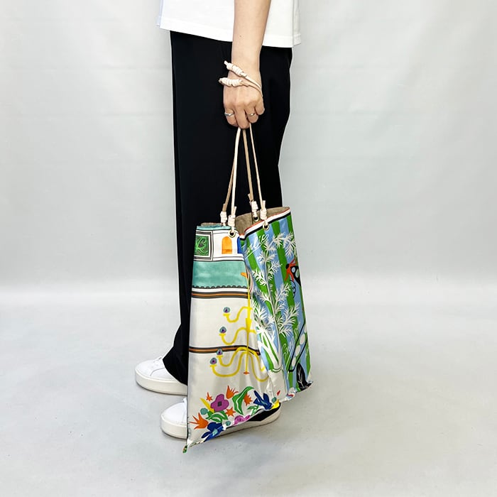 サイズは、A4サイズが入る大きさで見る角度により様々な表情が楽しめる人気のトートバッグです。