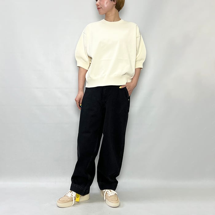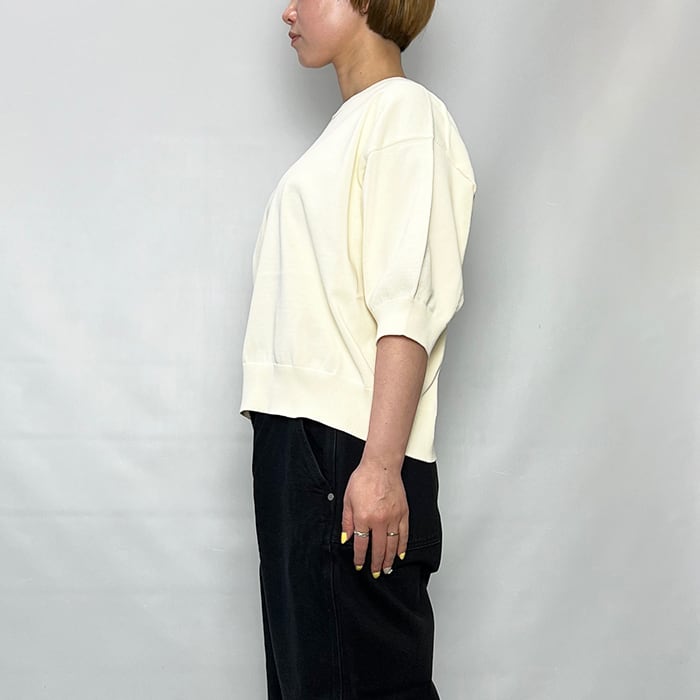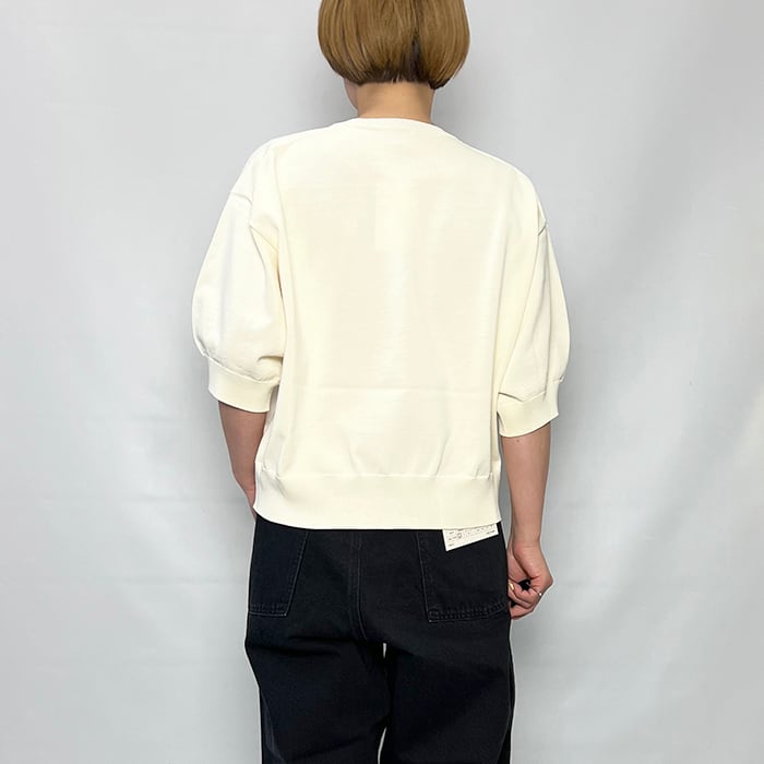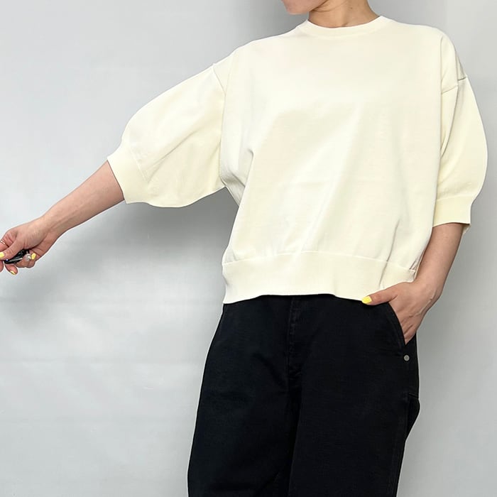 膨らみのあるコロンとしたスリーブがかわいらしさを添えるTシャツ。