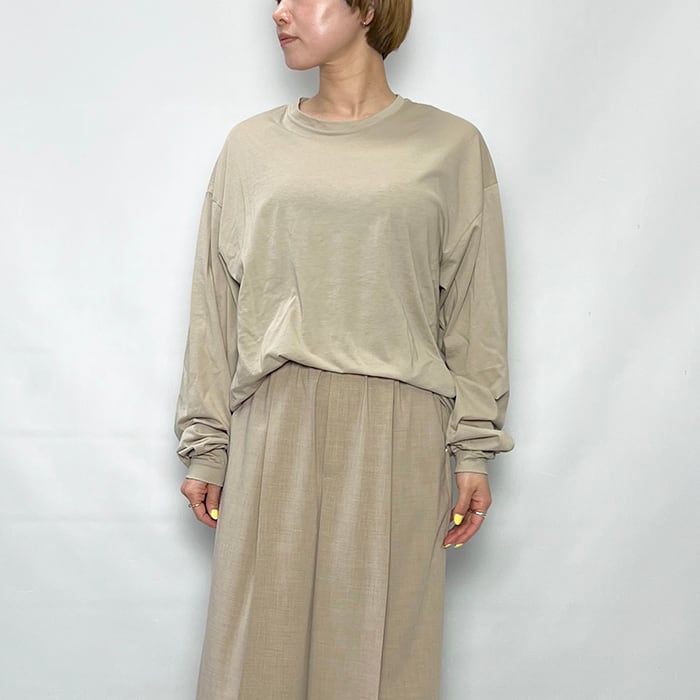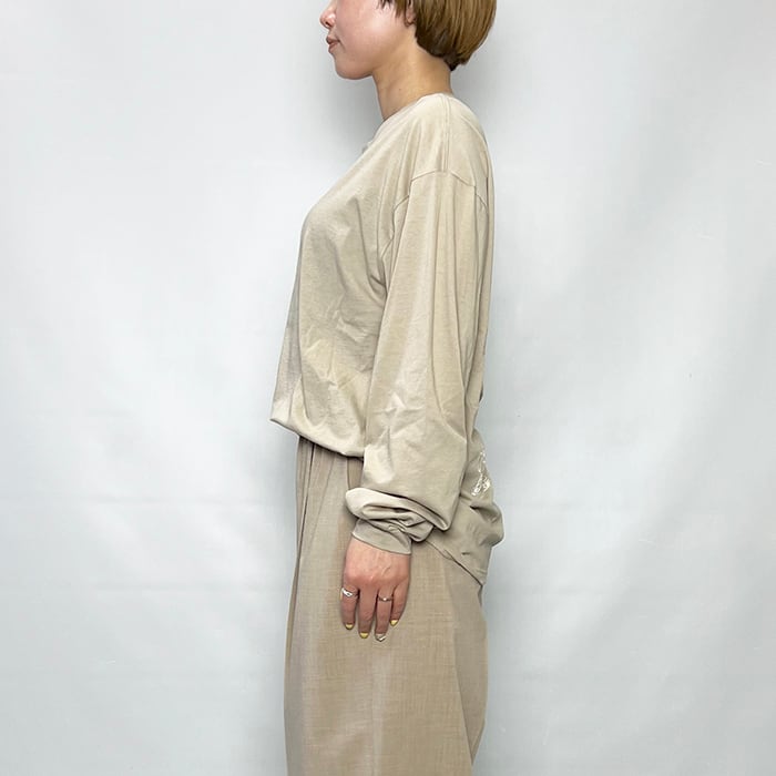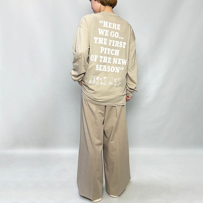 スラブ感のある風合い豊かなボディに、優しい色合いのプリントをのせることで、キャラクターTでありながら大人が着やすい雰囲気に仕上げました。