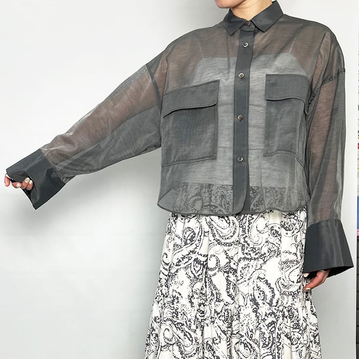 反する要素のミックス感をマテリアルや独自のカッティング、ドレープでつくりあげ