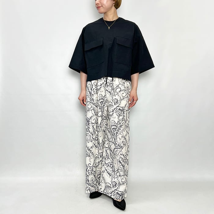 反する要素のミックス感をマテリアルや独自のカッティング、ドレープでつくりあげ
