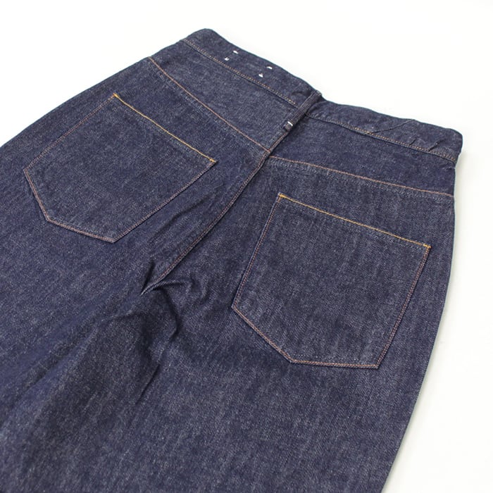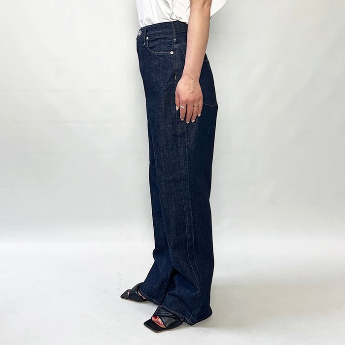 ウエストはフィット、ヒップから下にゆとりをもたせたワイドストレートシルエット。