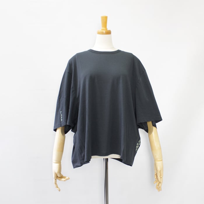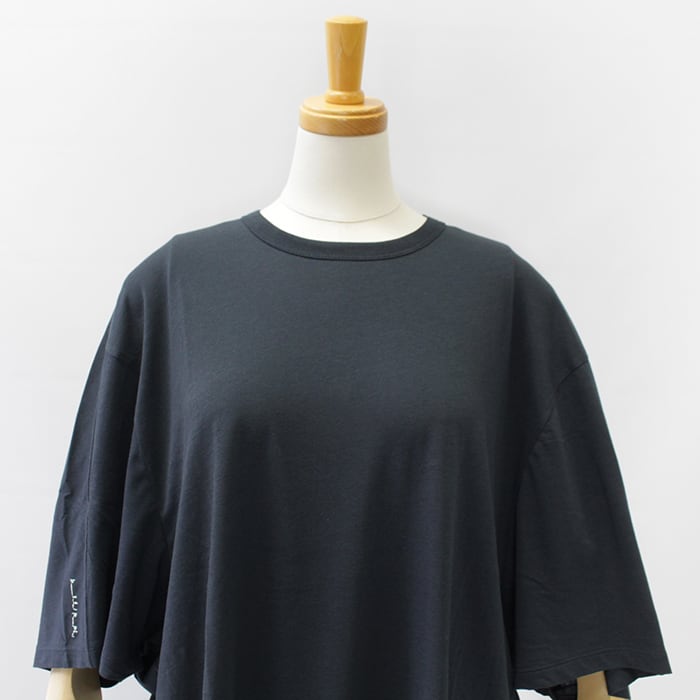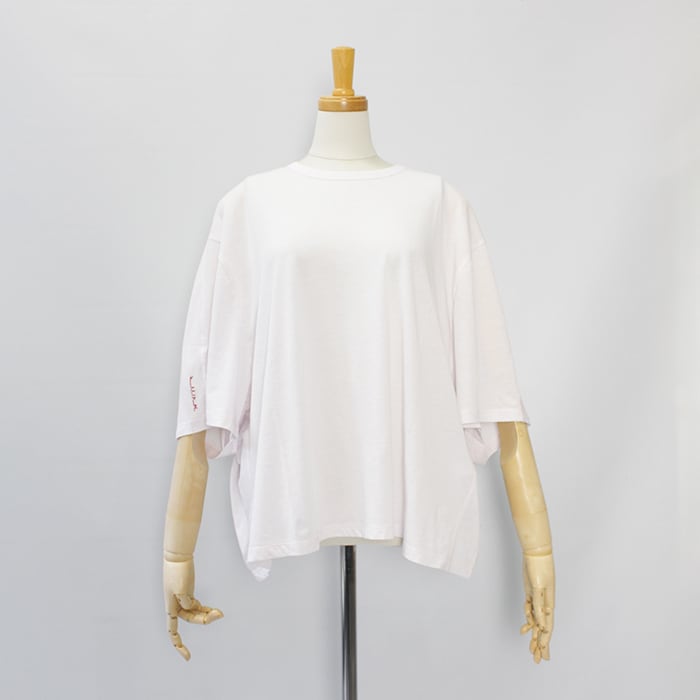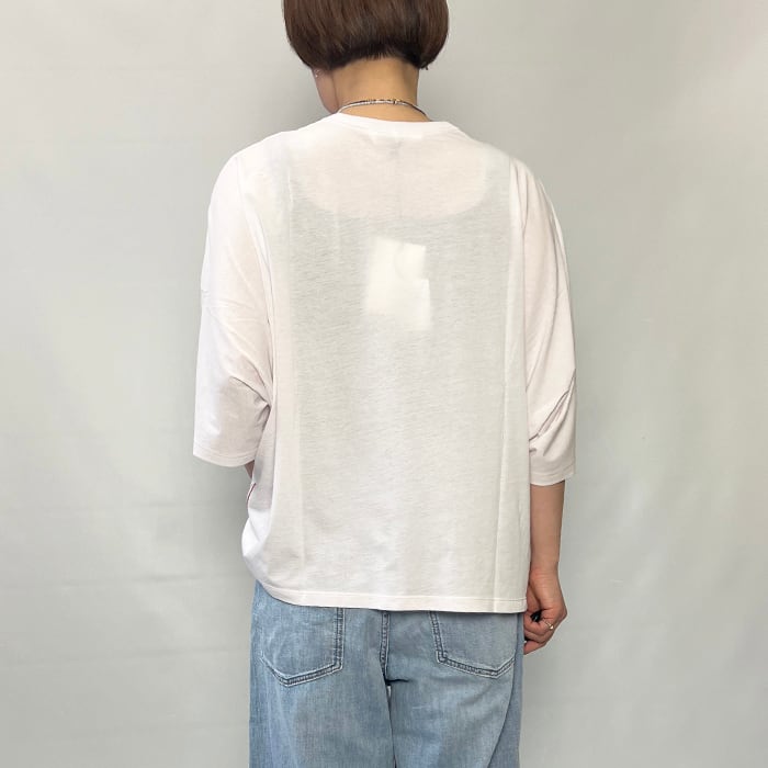 アームホールが肩から落ちたフォルムが特徴的なTシャツ。