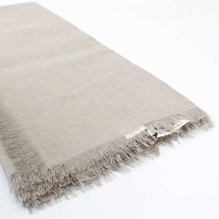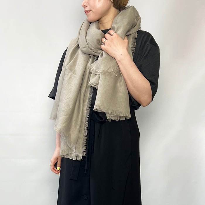 さらに、リネン特有の毛羽立ちを極力抑えるため、ストールとしては珍しいシルケット加工を施し、繊維表面を美しく整えながら、際立つ光沢感を実現しました。