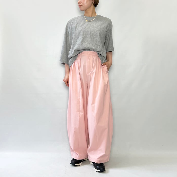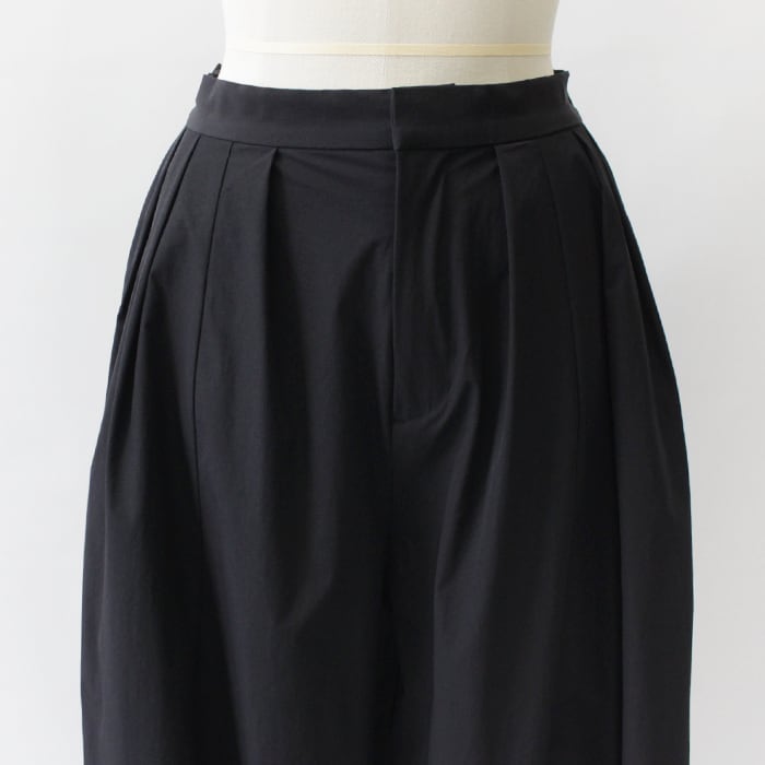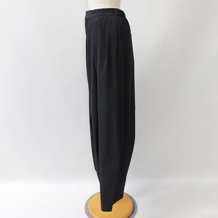 ゆったりとした綺麗なコクーンシルエットにこだわったメニータックパンツ。