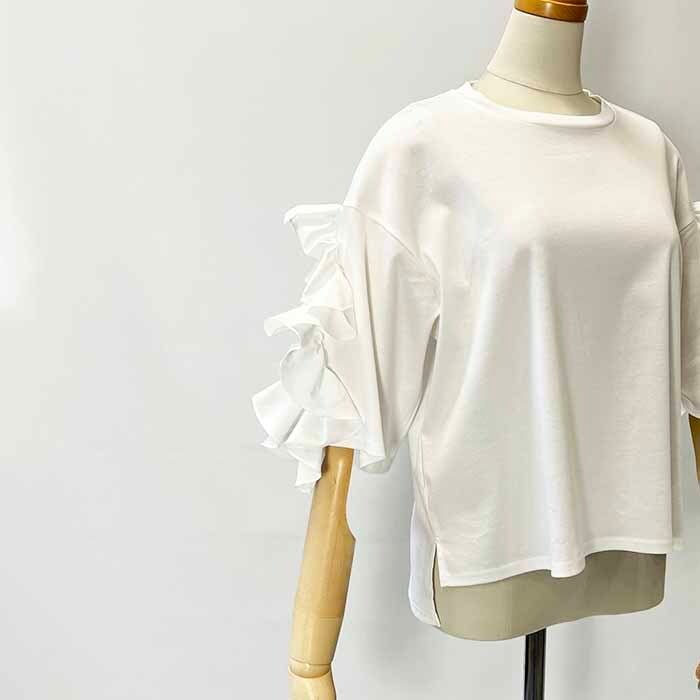 パンツ合わせで程よい甘辛バランスのスタイリングに、