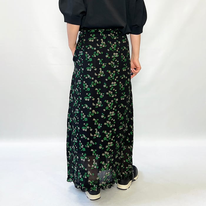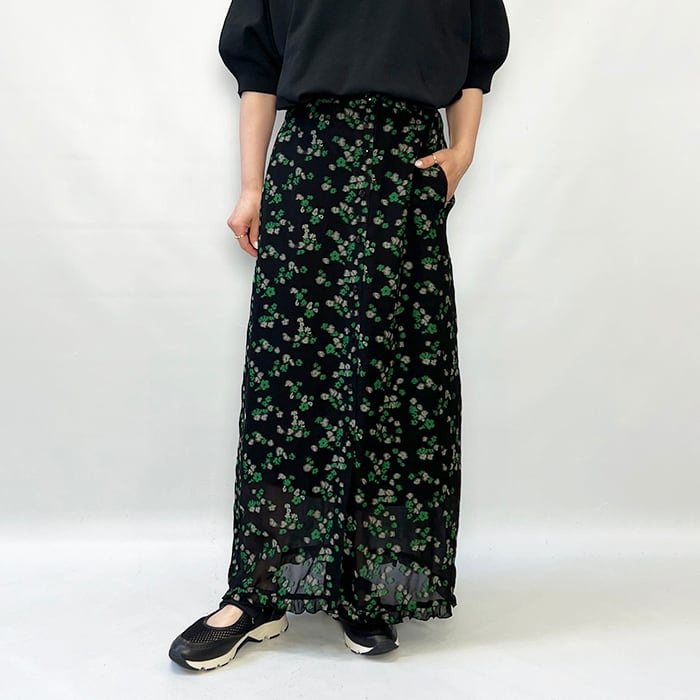 華奢なフリルを裾にあしらったタイトシルエットのロングスカートです。