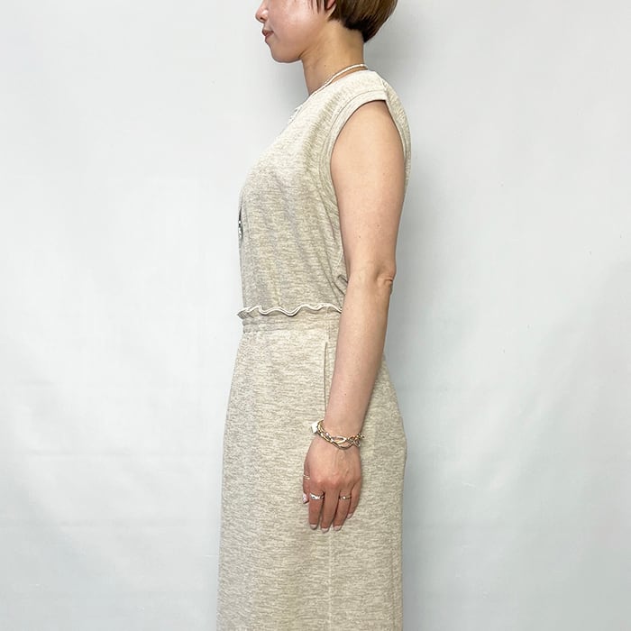 同素材のスカート(2602F06018)と合わせたセットアップスタイルもおすすめ。