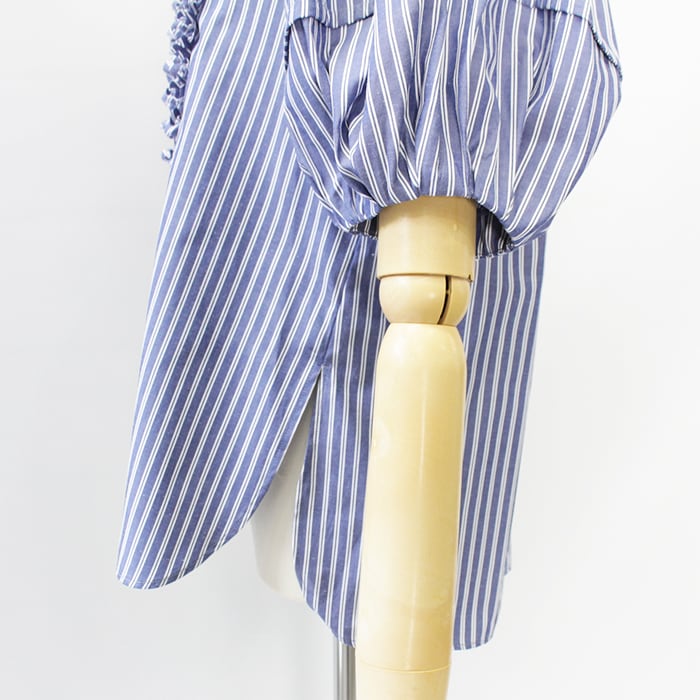 ・フリル部分は端を断ち切り始末にしている為、着用やお洗濯の繰り返しにより多少のほつれやみだれが生じることがあります。劣化を防ぐためお洗濯の際は摩擦にご注意下さい。