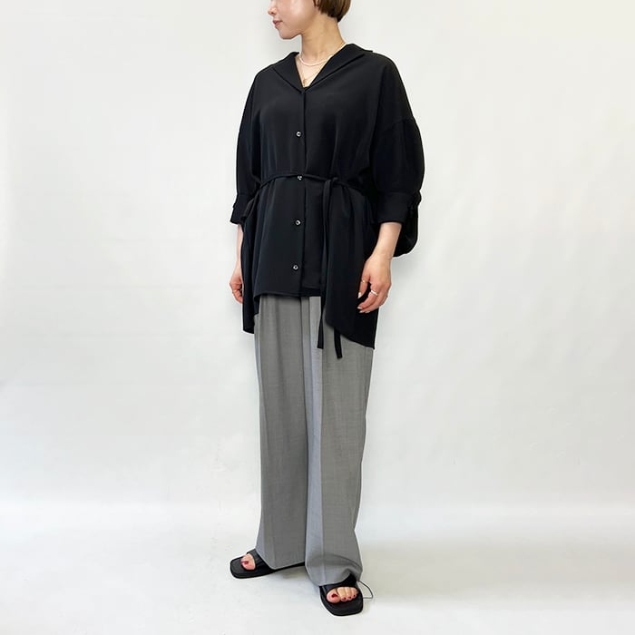 ベルトでウエストマークしてシルエットにメリハリをつけたり、前を開けてラフに羽織ることで、シャツジャケットとしてのこなれた表情も楽しめます。