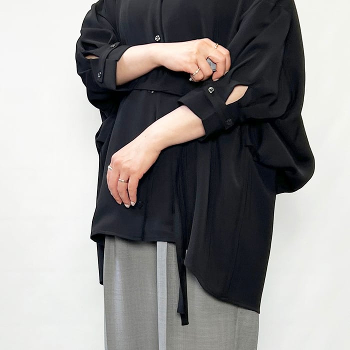 背中にたっぷりとしたバルーンシルエットを形成し、着るだけでさまになるシャツジャケットのような一枚。