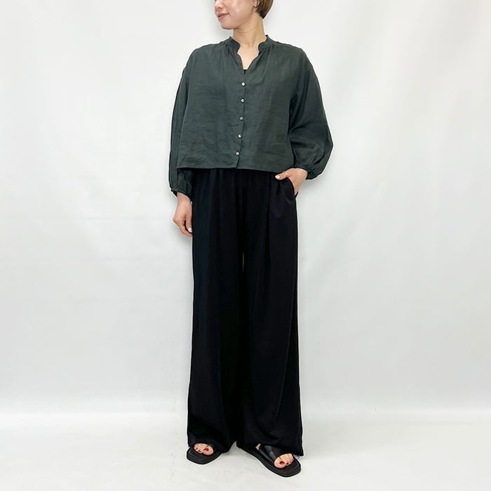 ボタンを留めてインにタックインすれば、ブラウスとしてフェミニンな印象に。