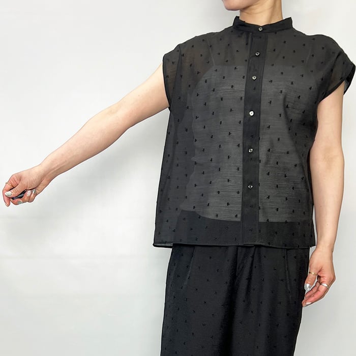 ベースには、繊細さとリラックス感のバランスに優れたオーガンジー素材を使用。
