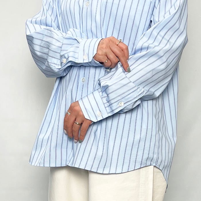 モダンなムードを取り入れたストライプ柄の正統派シャツ。