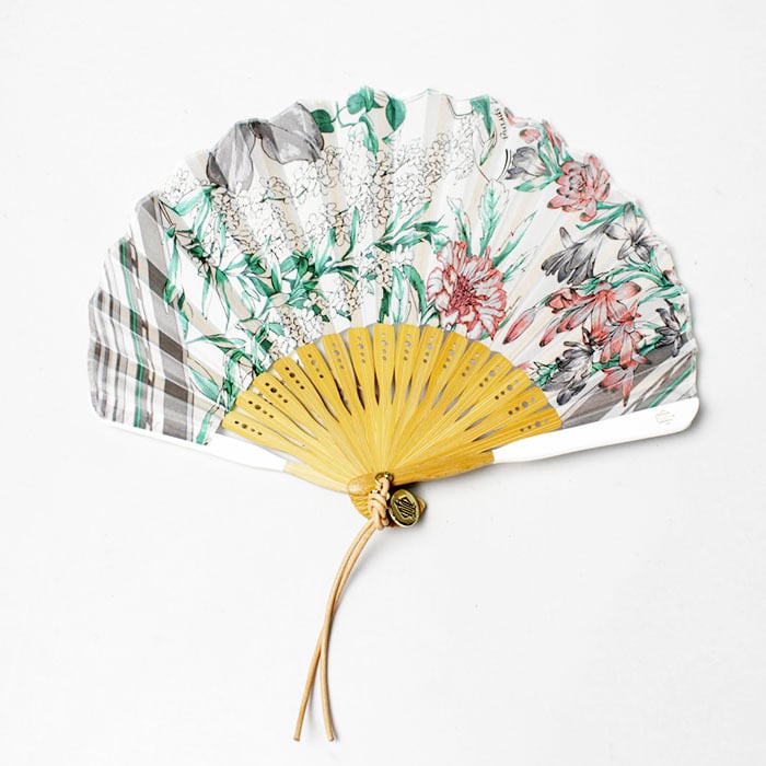manipuriの扇子は、プリントとロゴの刻印入りで、風が集まりやすくなるようにバンブーのフレームがセンターが高くなったデ帆立型のデザインになっております。