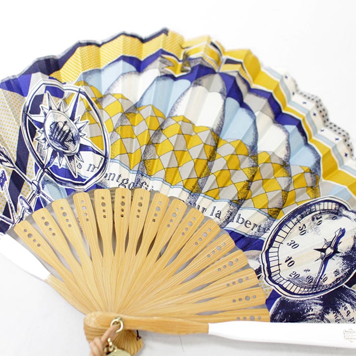 manipuriの扇子は、プリントとロゴの刻印入りで、風が集まりやすくなるようにバンブーのフレームがセンターが高くなったデ帆立型のデザインになっております。
