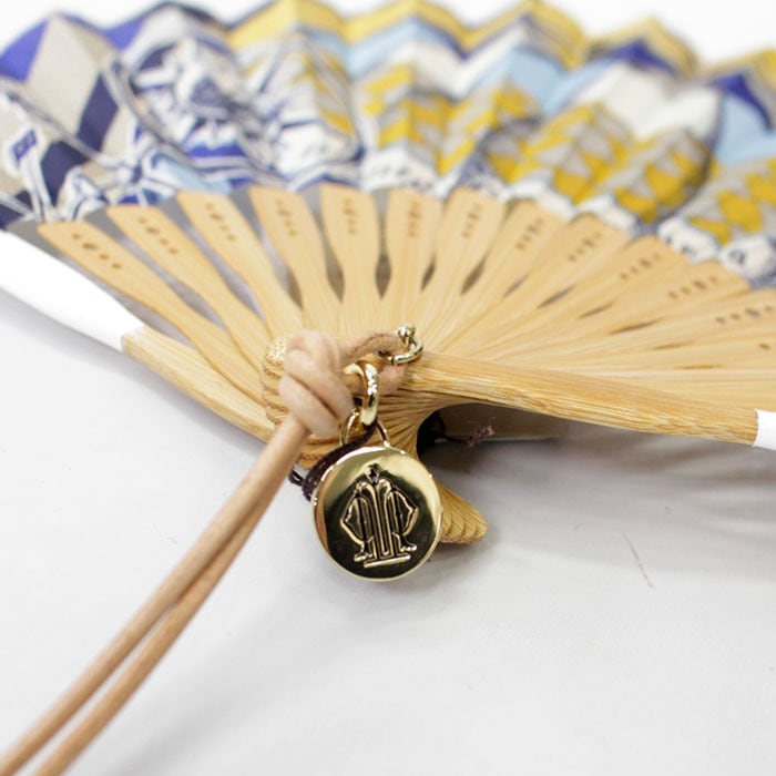職人が一本づつ仕上げた扇子で、上品なゴールドのチャームと革紐がポイントです。