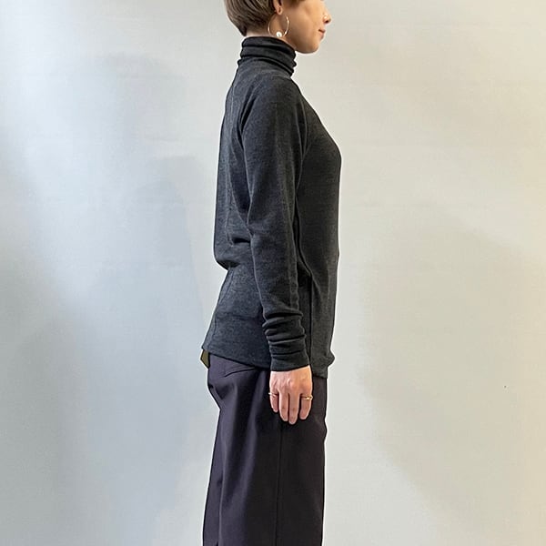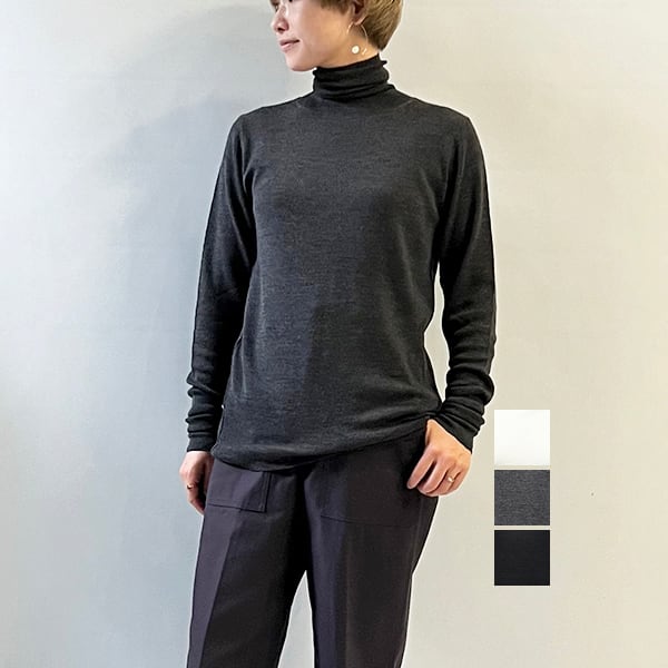 カシミヤに匹敵するほどのマイクロン(繊維長)のイタリー糸を使用した「毎日着たくなる」上質なハイネックニットが出来ました。